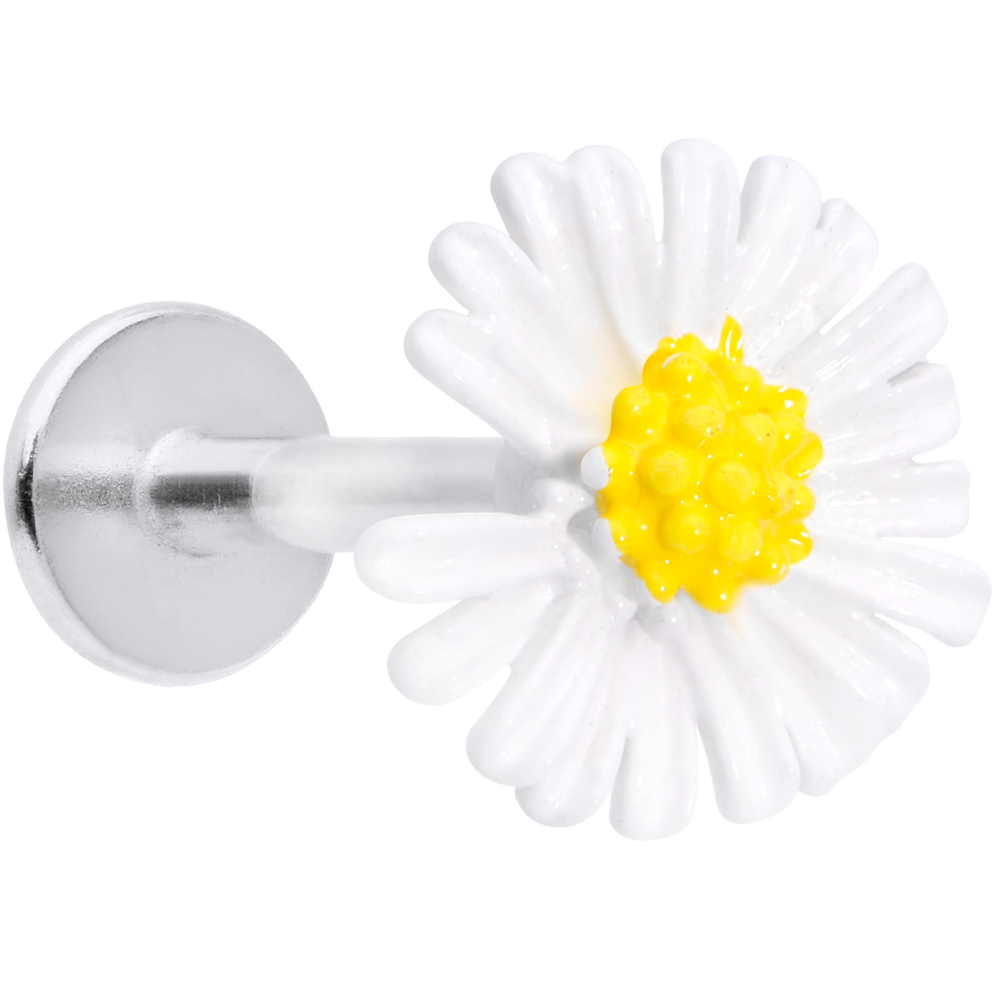 16 Gauge 5/16 White Daisy Flower Labret Monroe Tragus