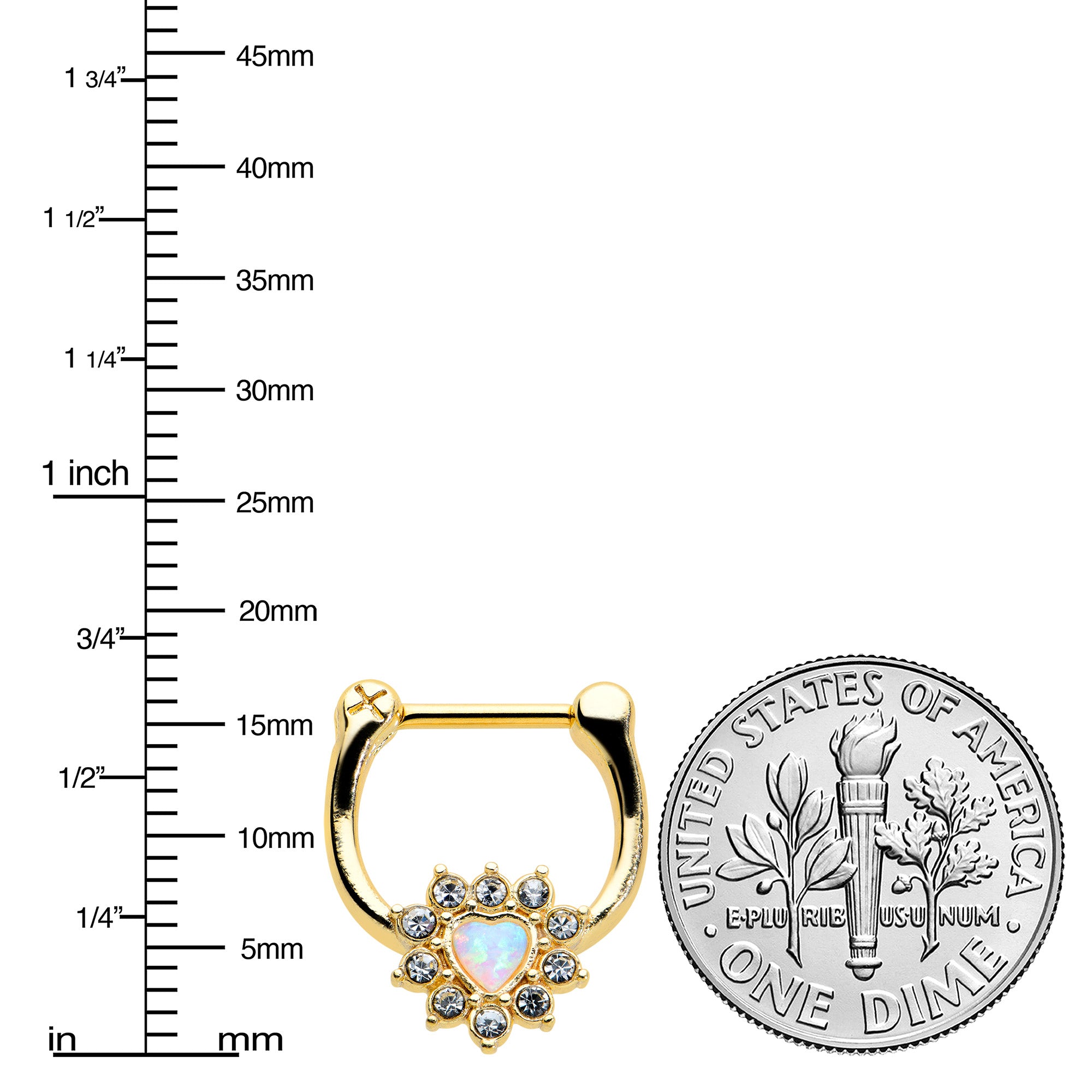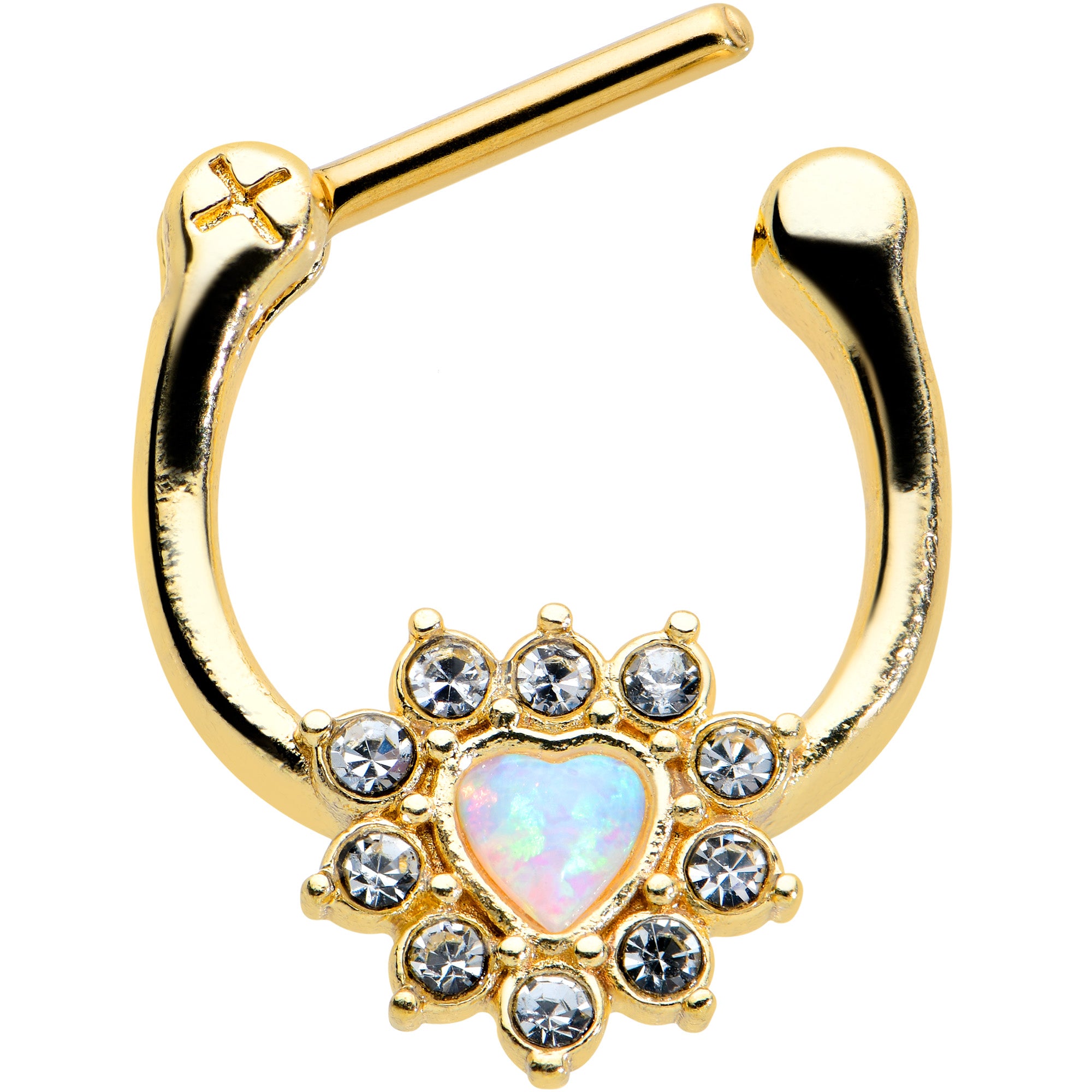 16 Gauge 5/16 White Faux Opal Gold Tone Sun Heart Cartilage Clicker