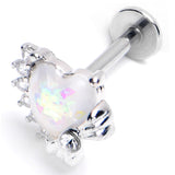 16G 5/16 White Faux Opal Sunny Heart Labret Monroe Tragus
