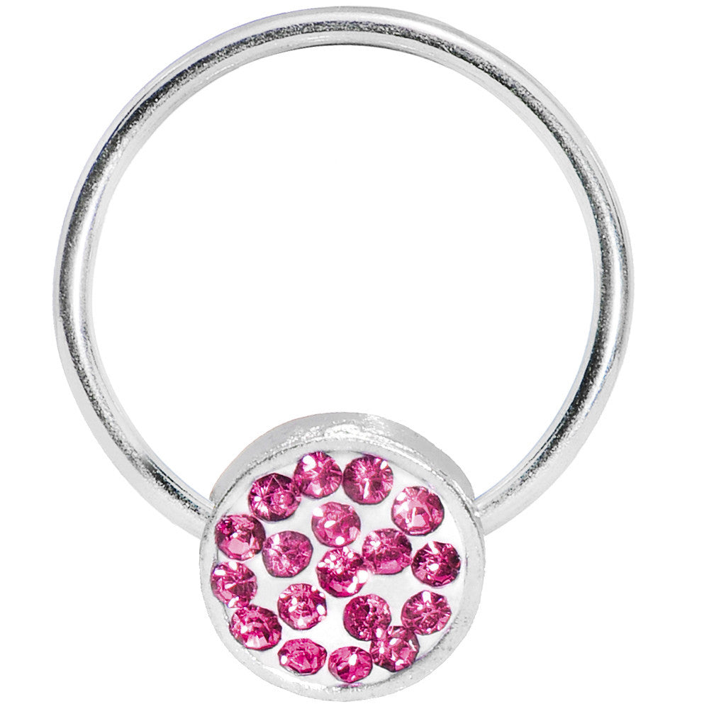 15 millimeter captive ring. Circle BCR with sparkling pave set gems. This 16 gauge captive ring can be used for multiple piercings.