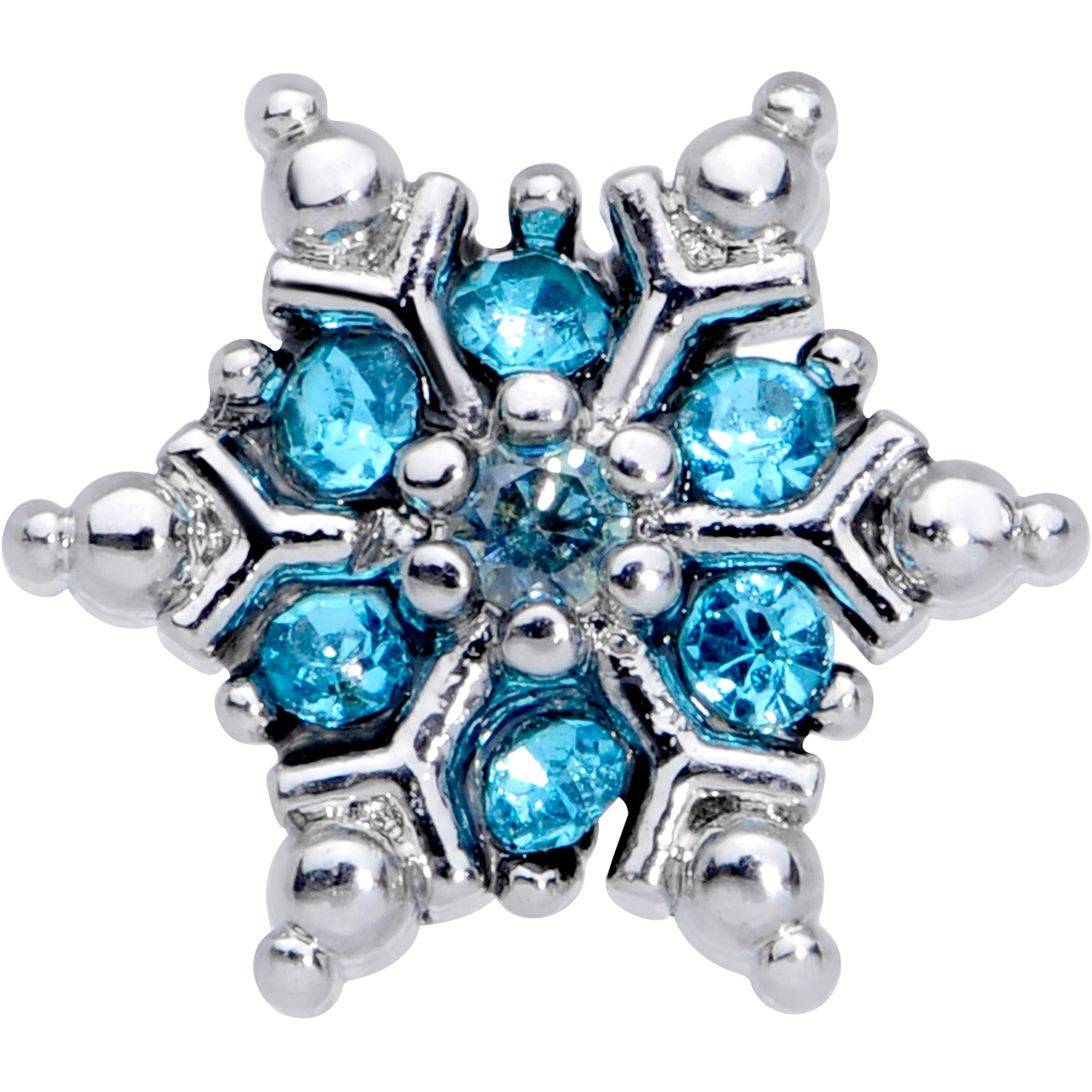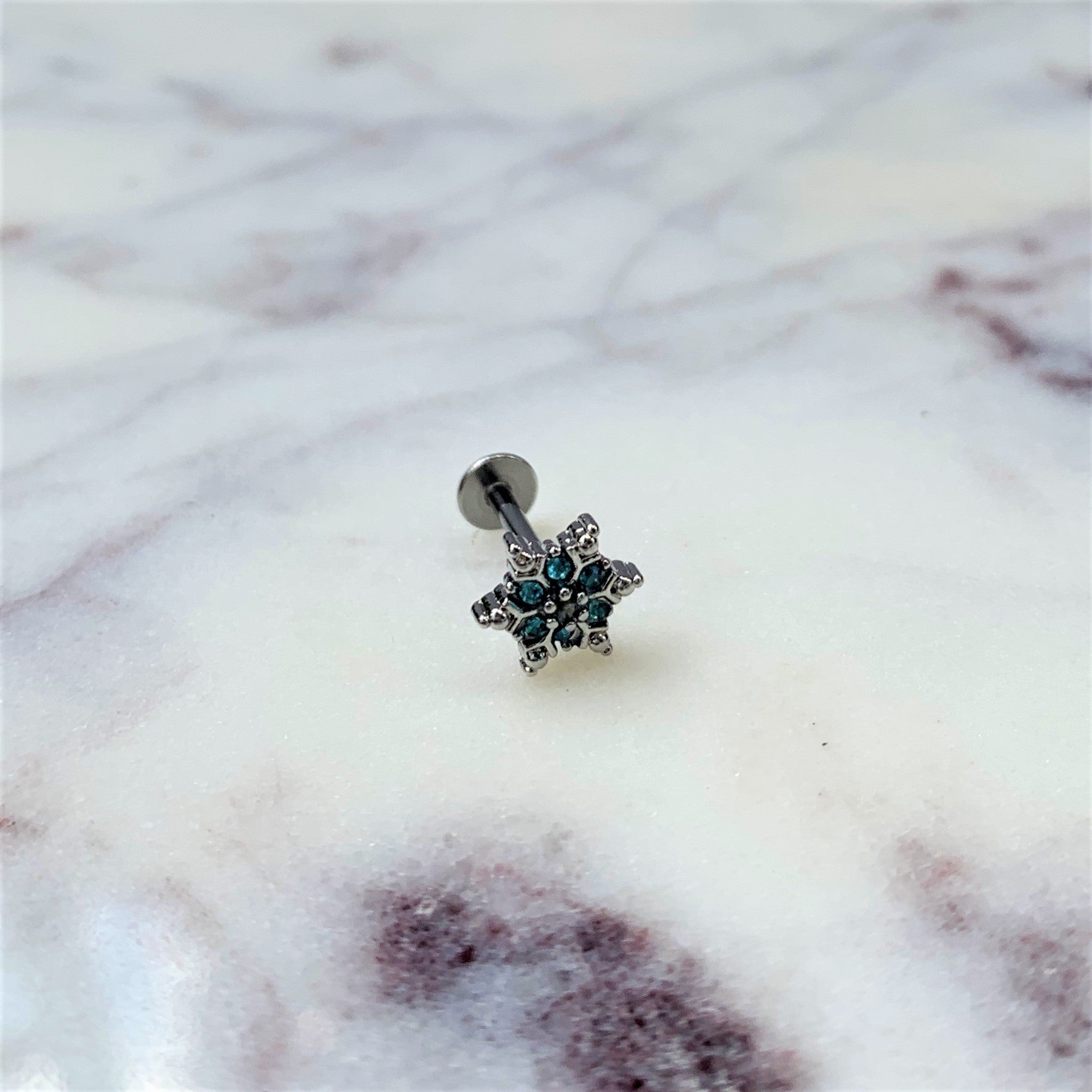 16G 5/16 Aqua CZ Gem Snowflake Christmas Labret Monroe Tragus