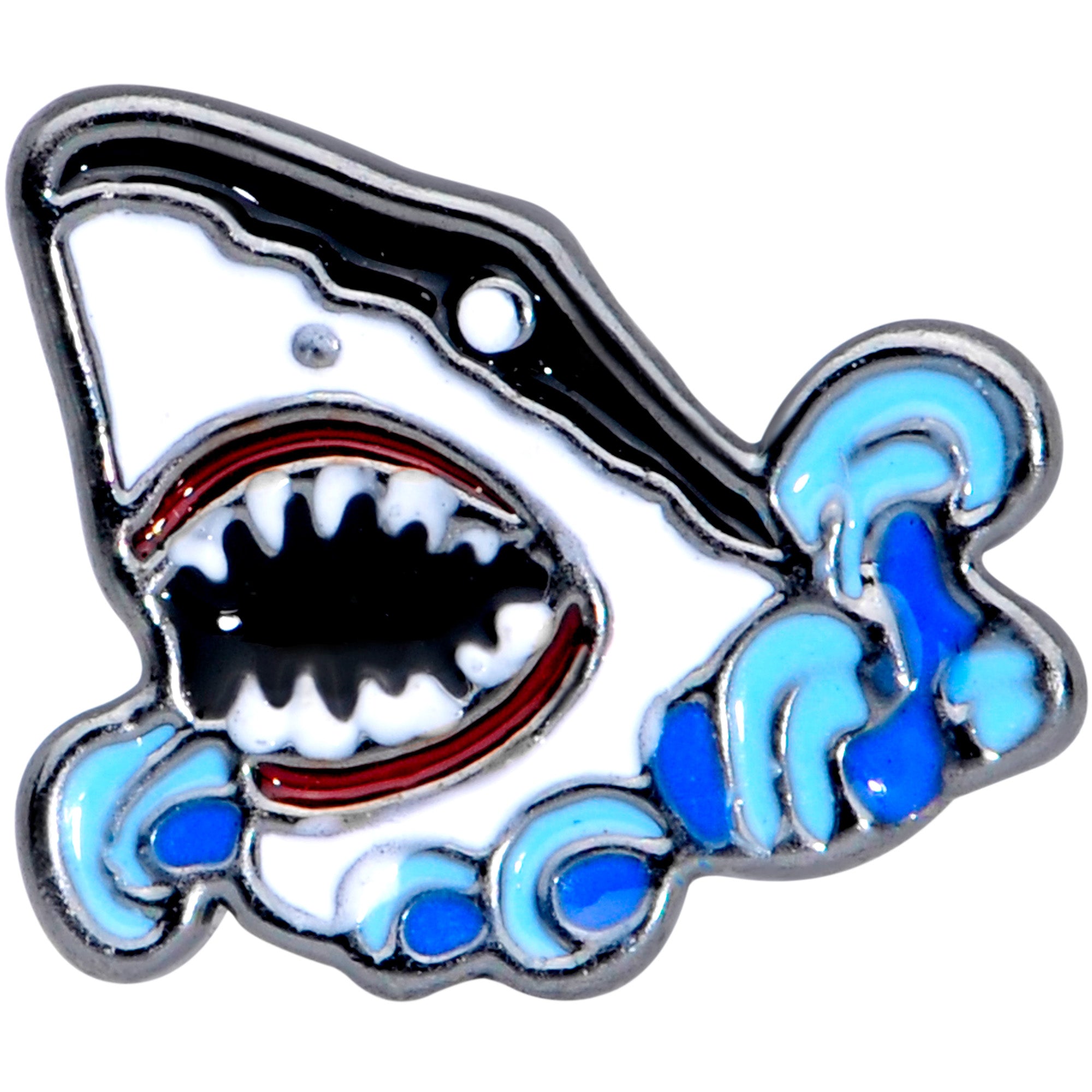 Take a bite out of summer with this 16 gauge lip ring! It's made with an 8mm black PVD over 316L surgical grade stainless steel straight barbell with a flat disc end. It features a shark charm coming out of the water! And just like sharks have to keep moving, this one can be worn in multiple piercings including lip, monroe, tragus, helix, and some conch piercings! Even if you're nowhere near the water, get a shark bite this summer with this stunning, scary, shark-themed cartilage jewelry!