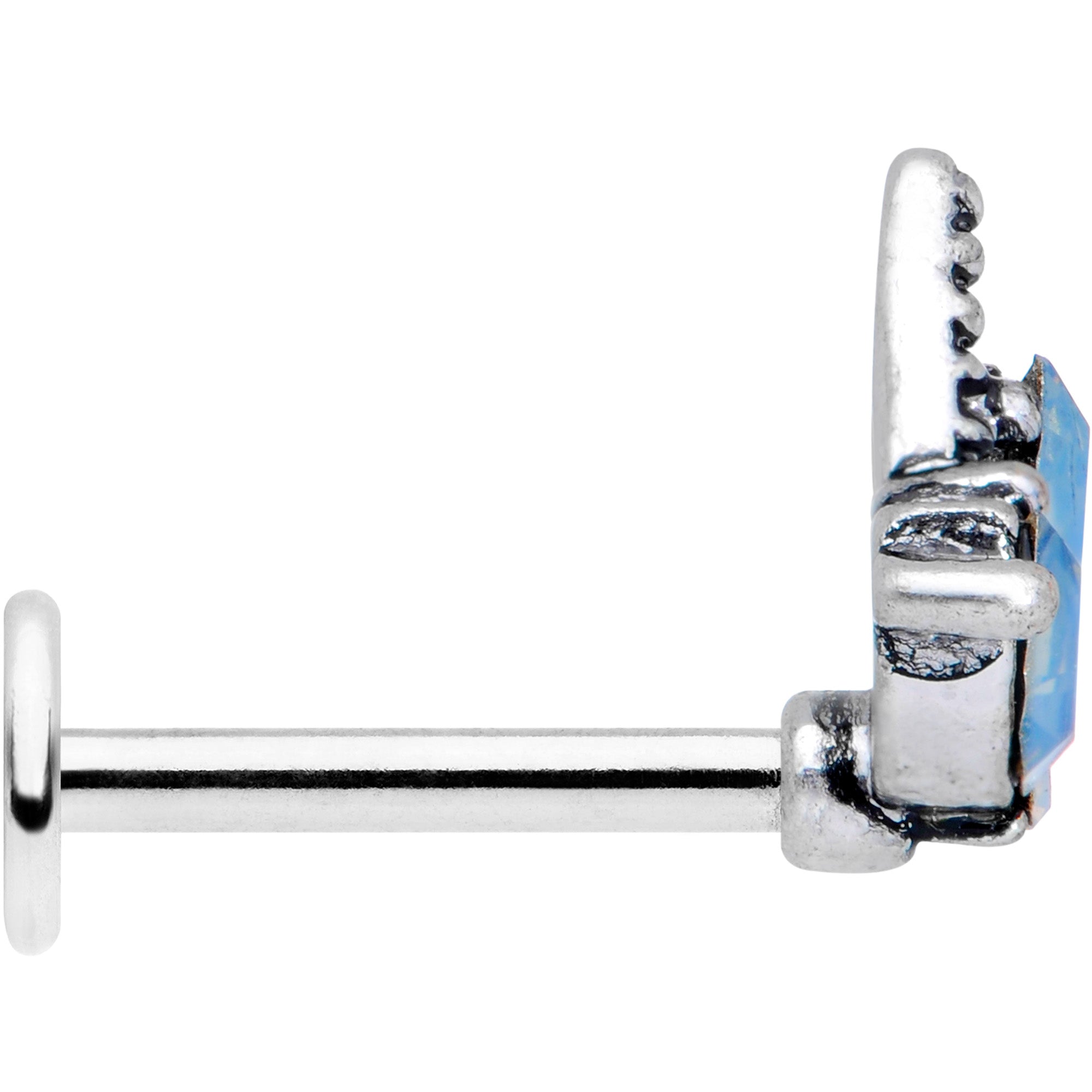 16 Gauge 5/16 Blue Faux Opal Triad Labret Monroe Tragus