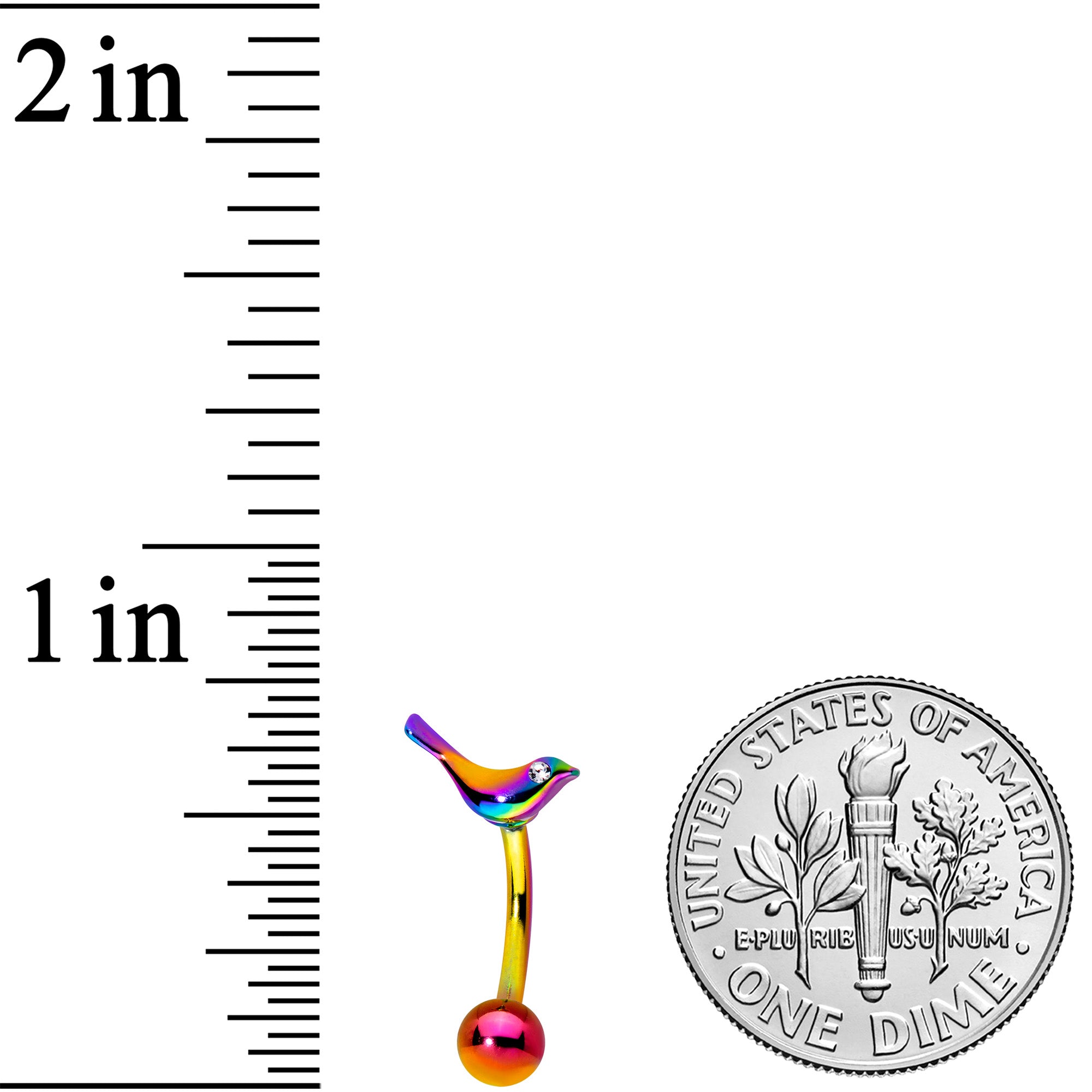 16 Gauge 5/16 Clear Gem Rainbow Bird Curved Eyebrow Ring