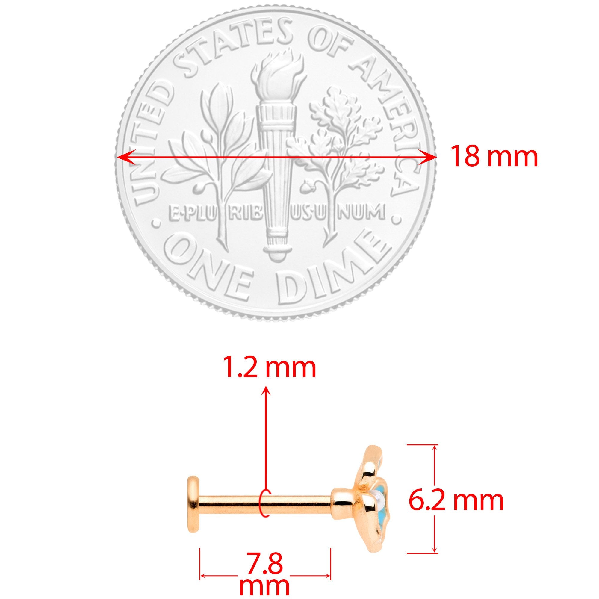 With winter on its way out, flowers are poking their heads up everywhere - even in your piercings! All three of these 16 gauge labret studs are made with 8mm rose gold tone plated over 316L surgical grade stainless steel posts. You get one with a simple 3mm ball end for a timeless look, one with a simple flat end that's composed of a clear gem, and one with a blue inlaid pansy with black detailing on the petals and a tiny white orb set at its center. These can be worn in cartilage piercings like your tragus, helix, and conch as well as the monroe piercing. With this set, you're ready for anything - no matter the reason or the season! Sold as a set of three.