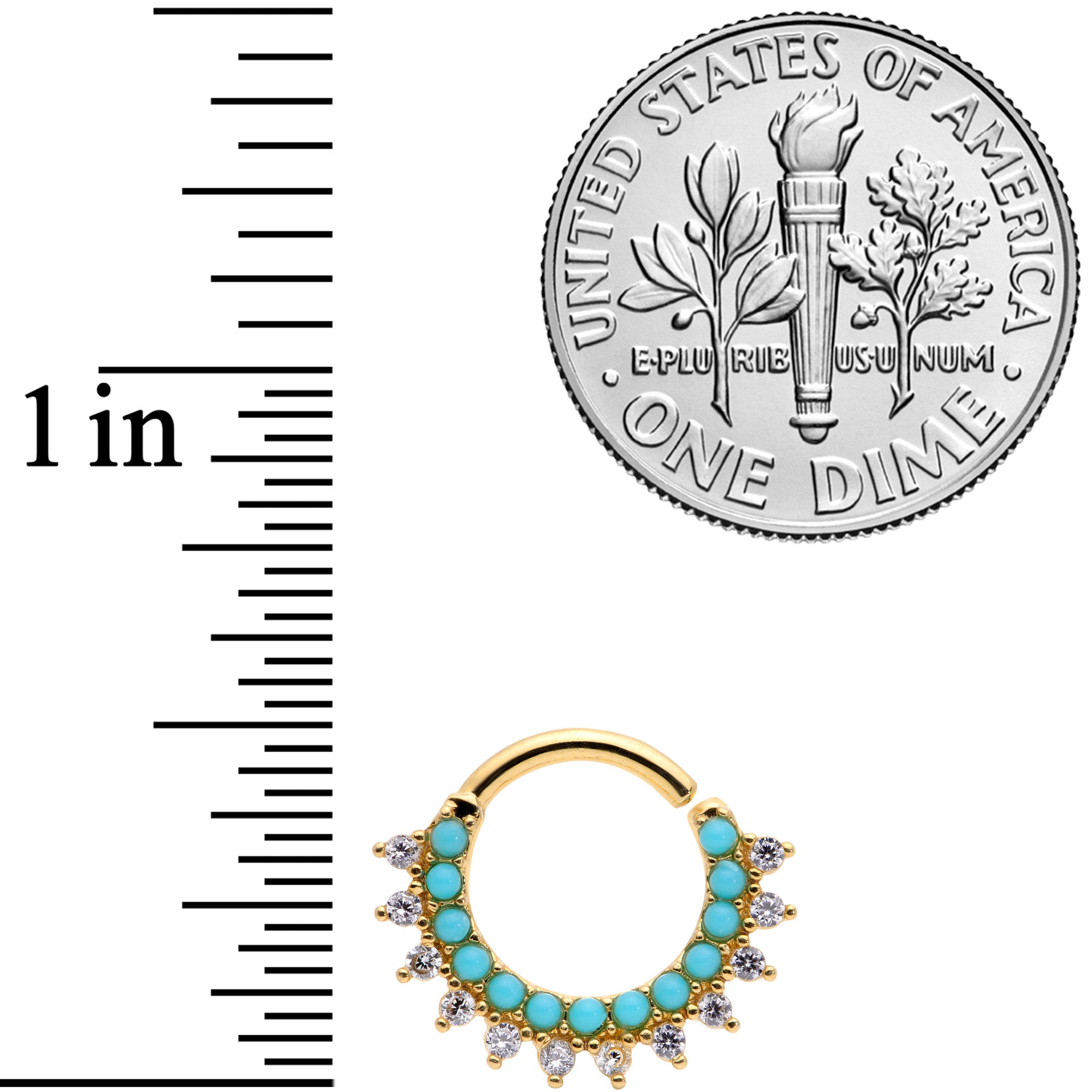 16 Gauge 5/16 Turquoise Gold Tone Western CZ Bendable Daith Cartilage