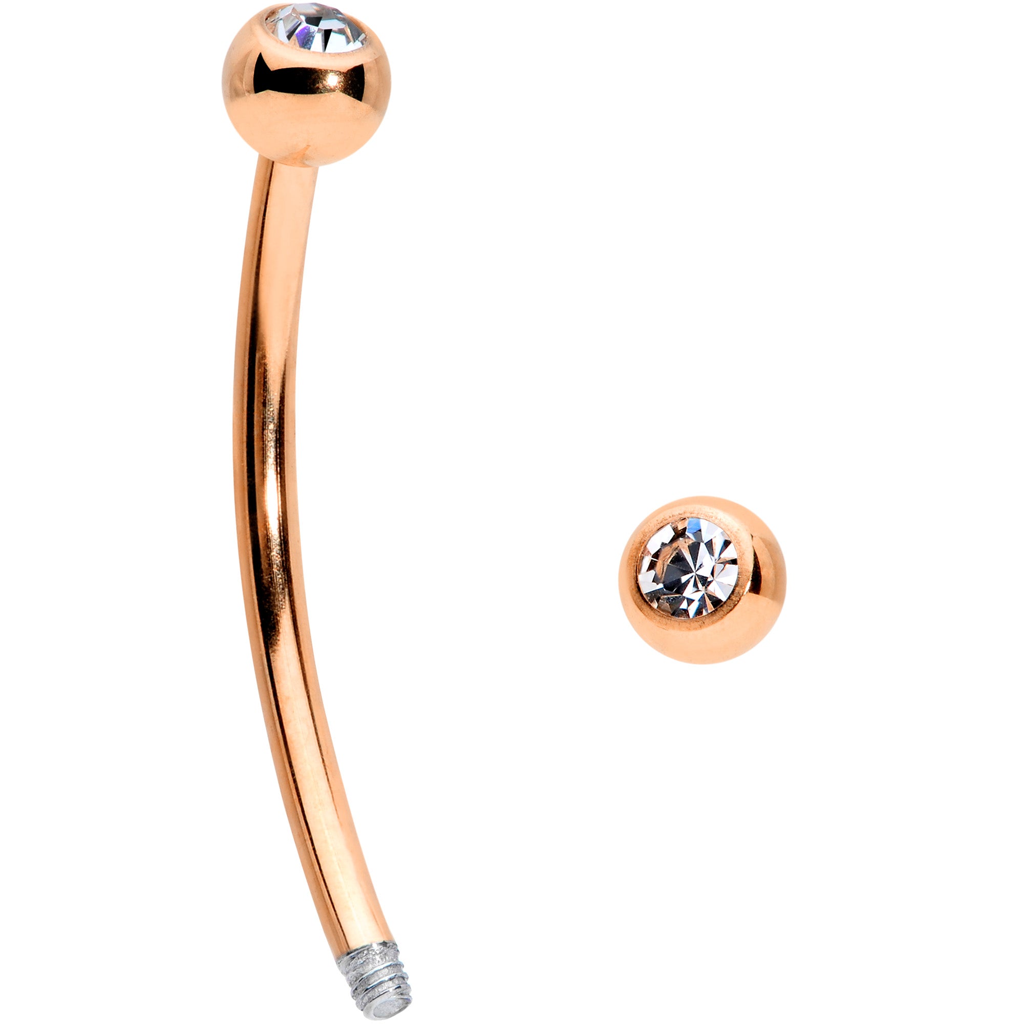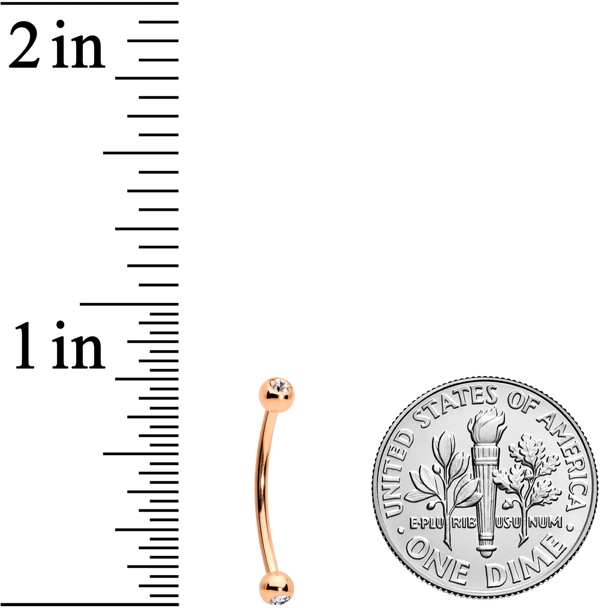 16 Gauge 9/16 Clear Gem Ball End Rose Gold Tone Curved Barbell