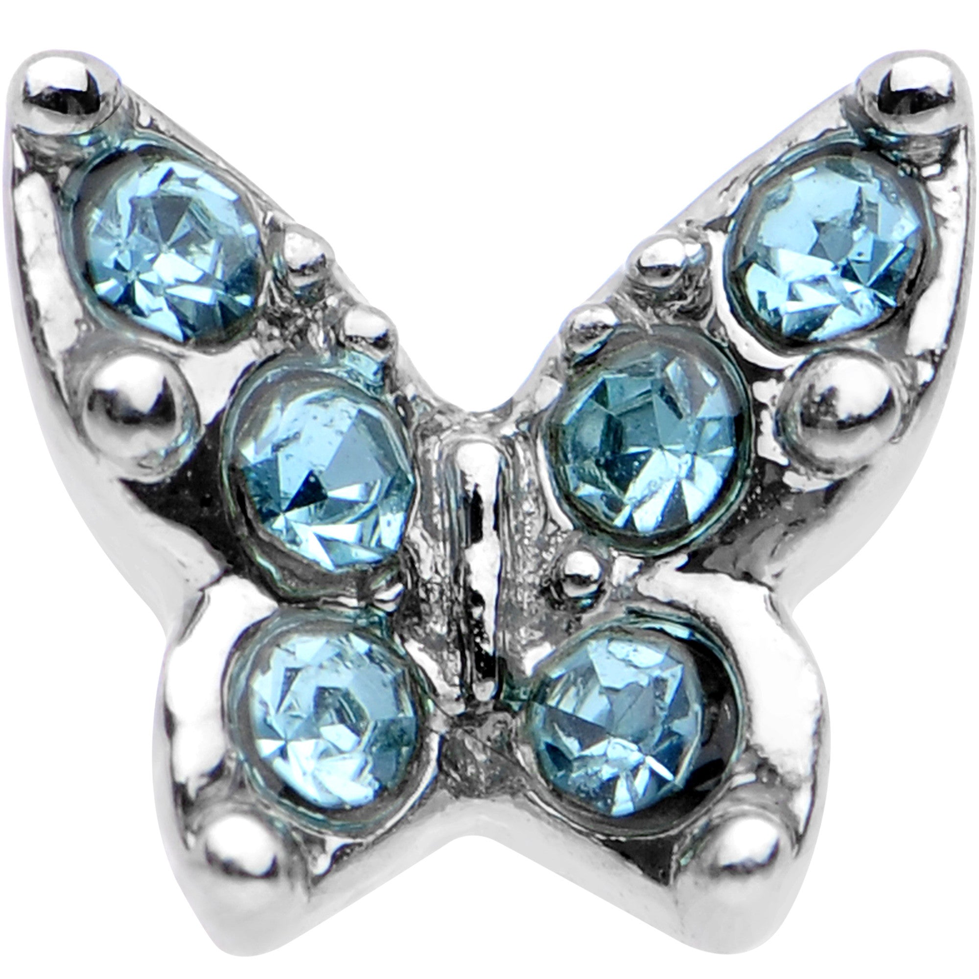 ,16 Gauge Blue Gem Silver Tone Butterfly Tragus Cartilage Earring
