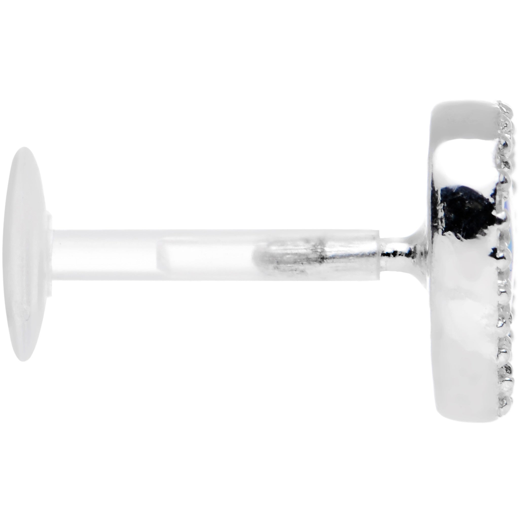 Get ready to inspire loving thoughts when you wear this unique bioplast post cartilage jewelry featuring a 6mm straight barbell and a sapphire colored synthetic opal heart with a shining gem-studded frame. Cartilage jewelry can be worn in multiple locations including helix and tragus piercings so whether you are heading out on the town or are looking for love this helix jewelry is perfect for you.
