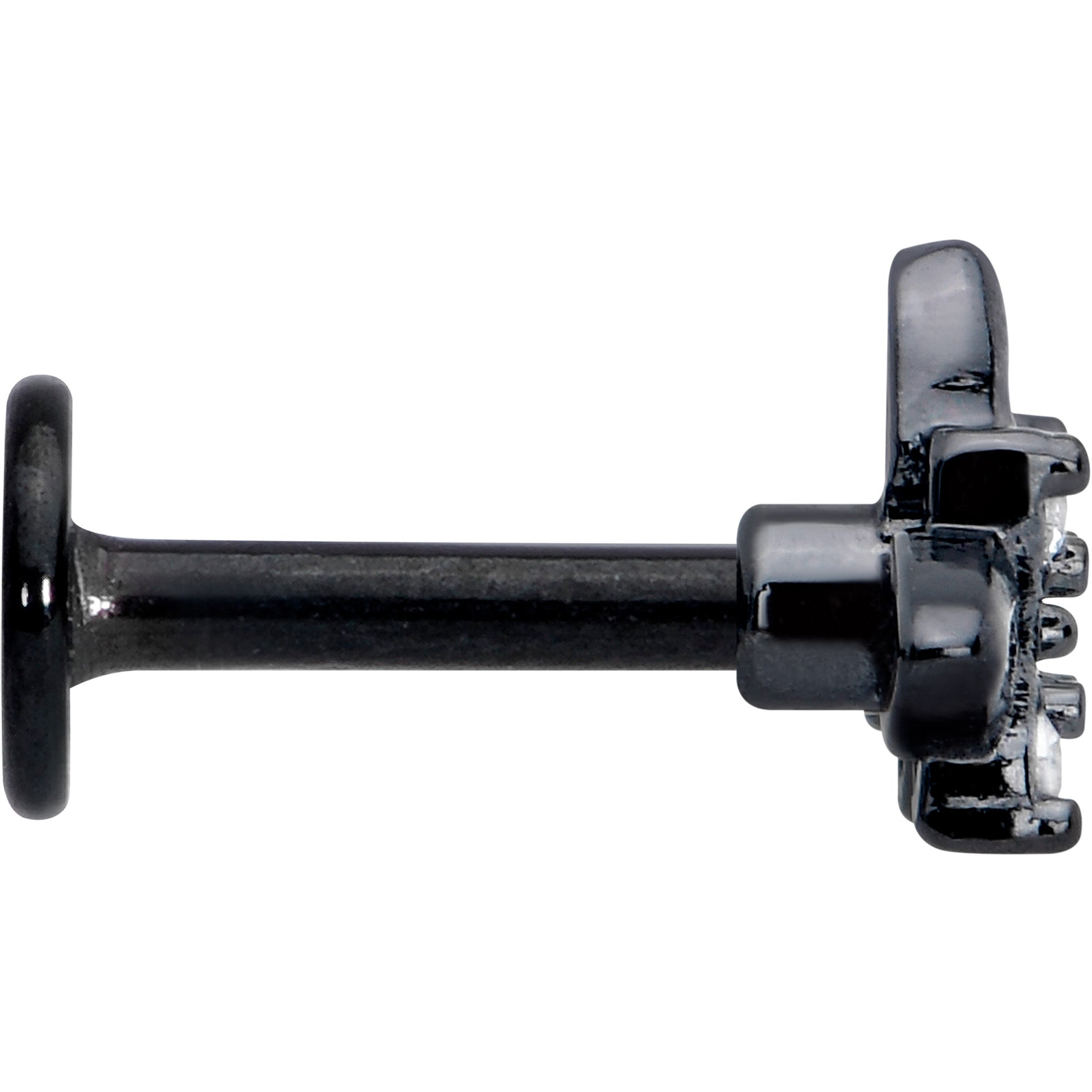 16G Clear CZ Gem Black Gothic Star Flat Back Earring