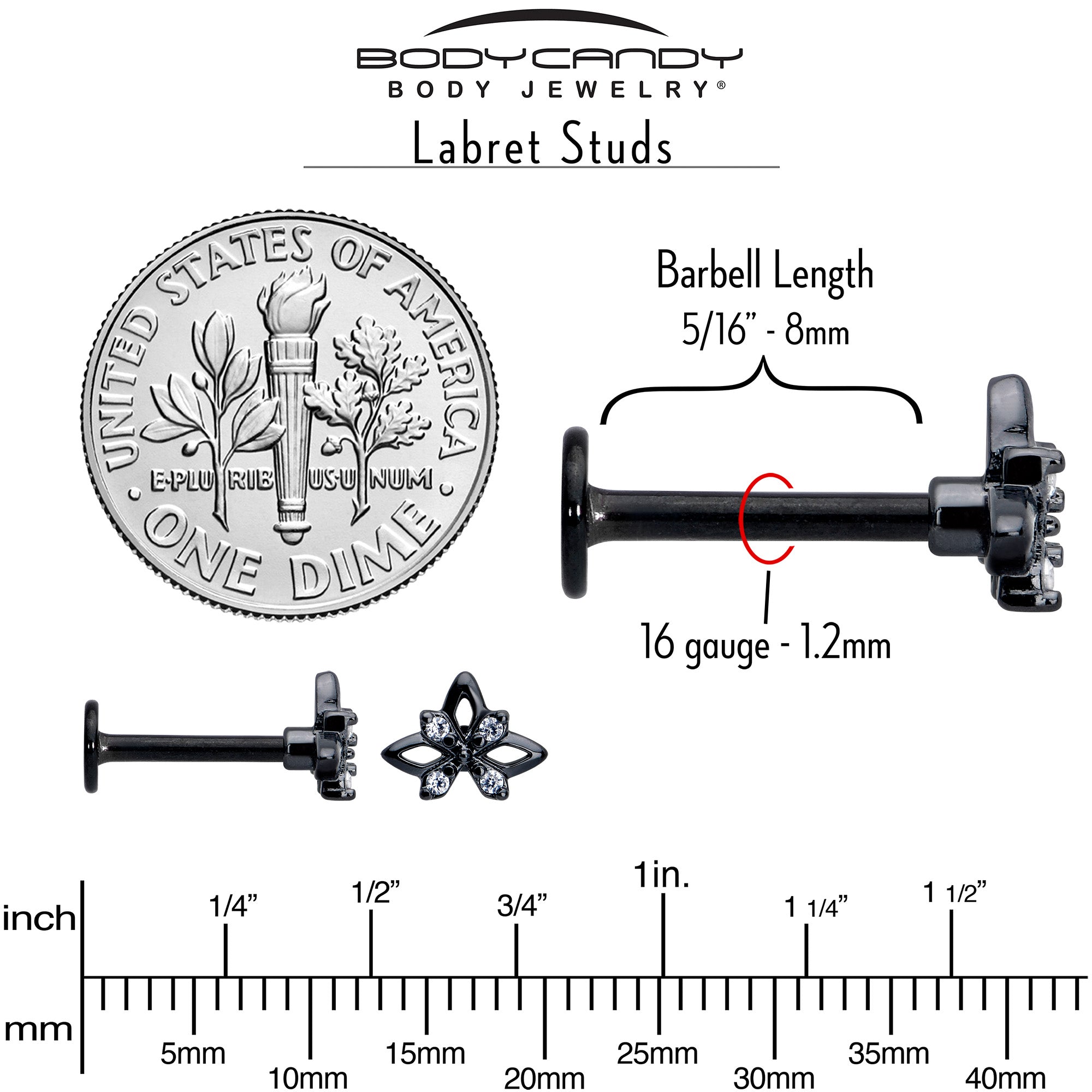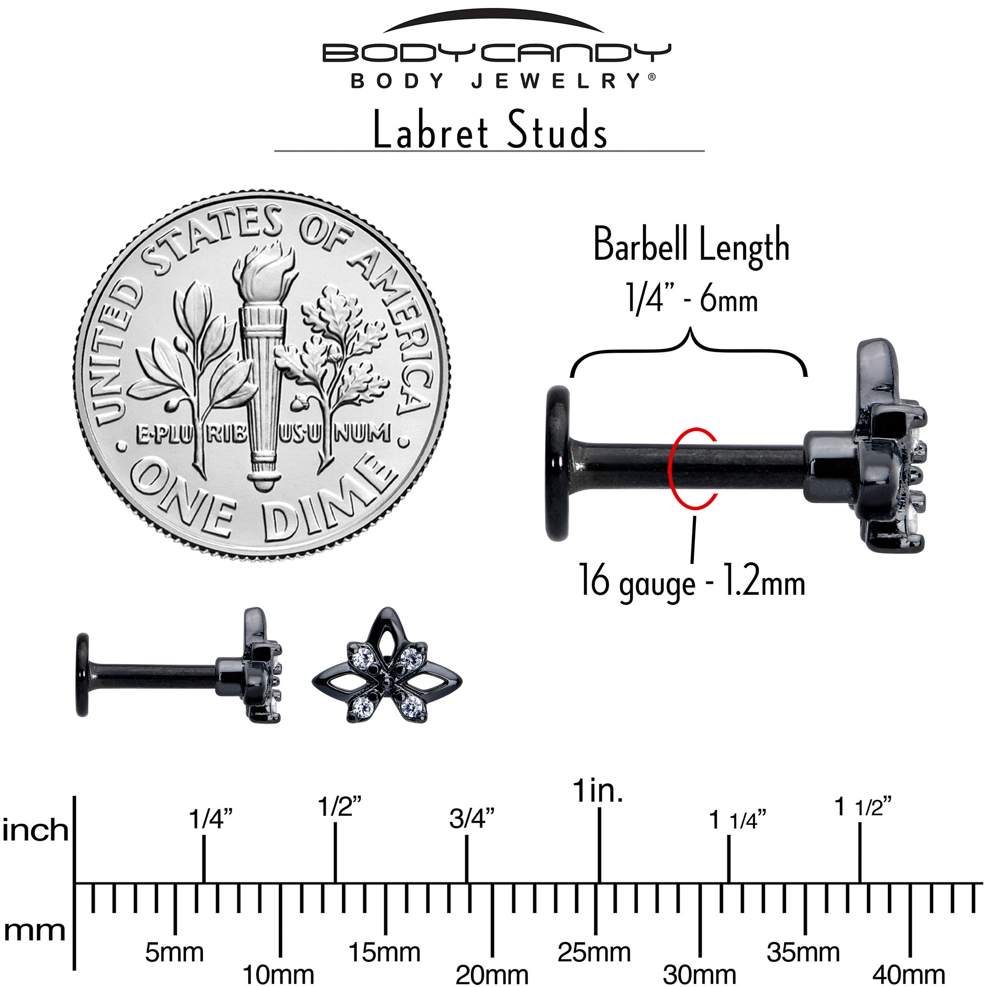 Check out this super comfortable 16 gauge flat back earring for 24/7 wear.. No need to take this earring out; keep it in for sleeping and naps. It's made with a 6mm black PVD over 316L surgical grade stainless steel straight post with a flat disc end. The front end features a star charm with an X over it, set with clear cubic zirconia gems at the cardinal points. It is further embellished with textured detailing for added style. Let your inner goth come out to play with this darkly divine ear piercing jewelry.