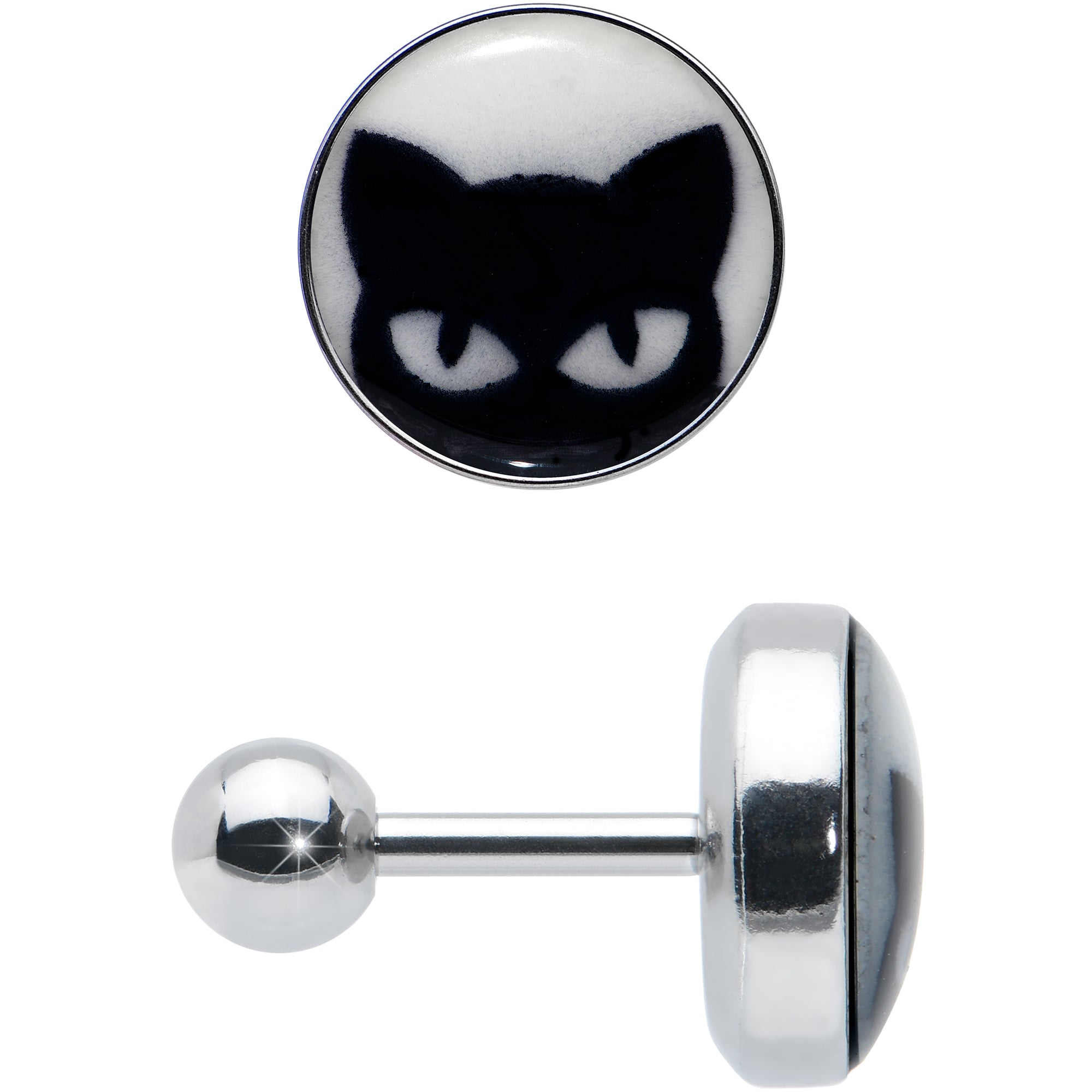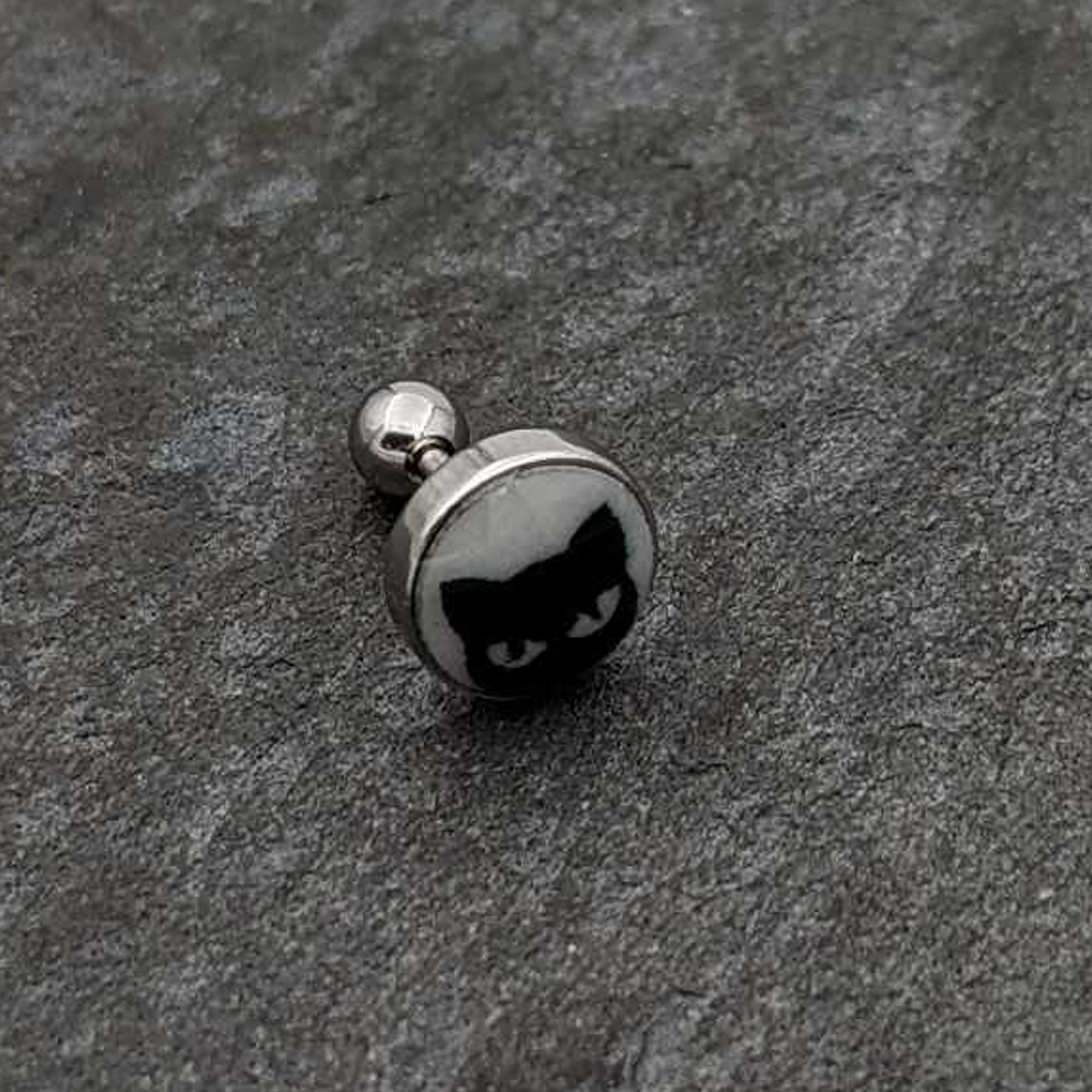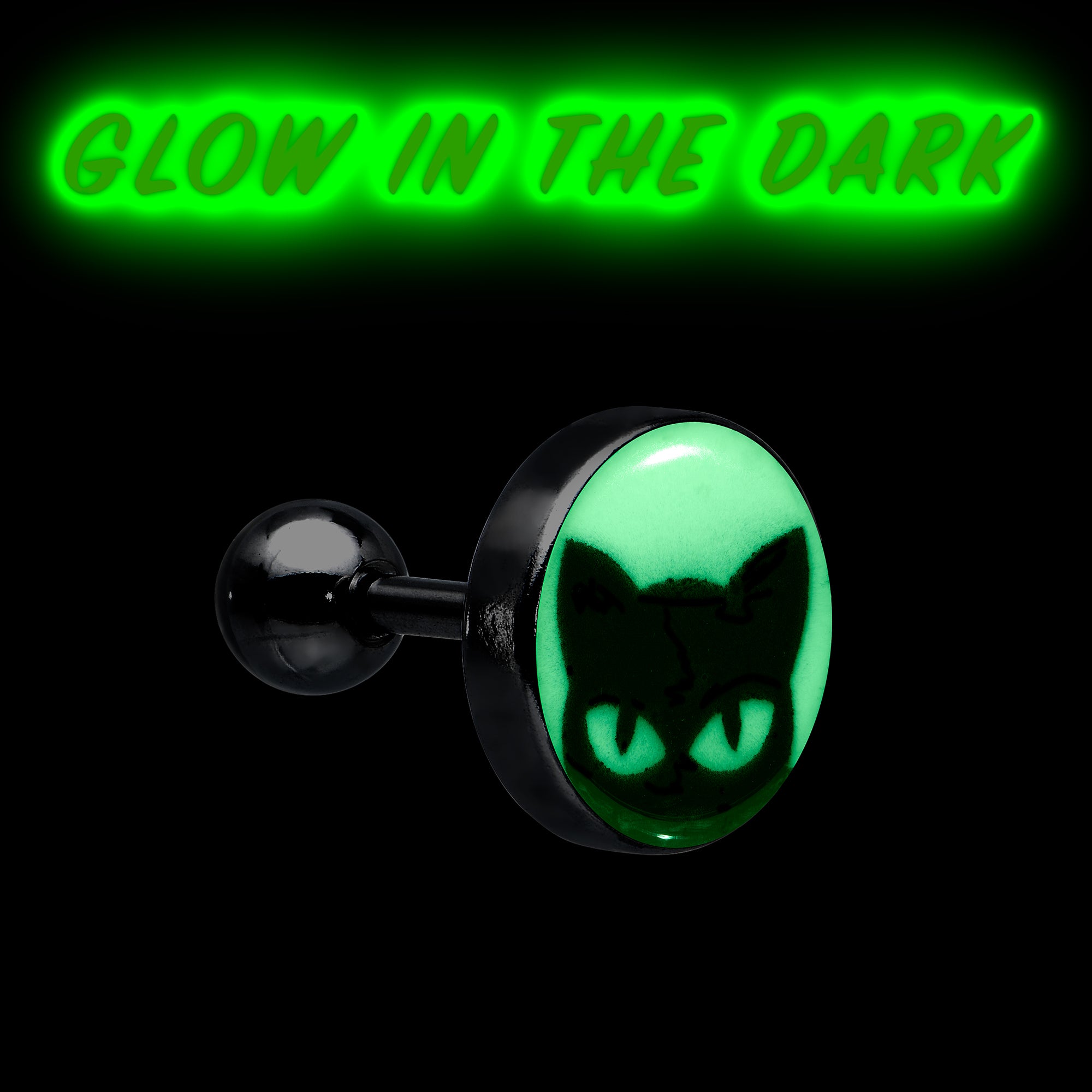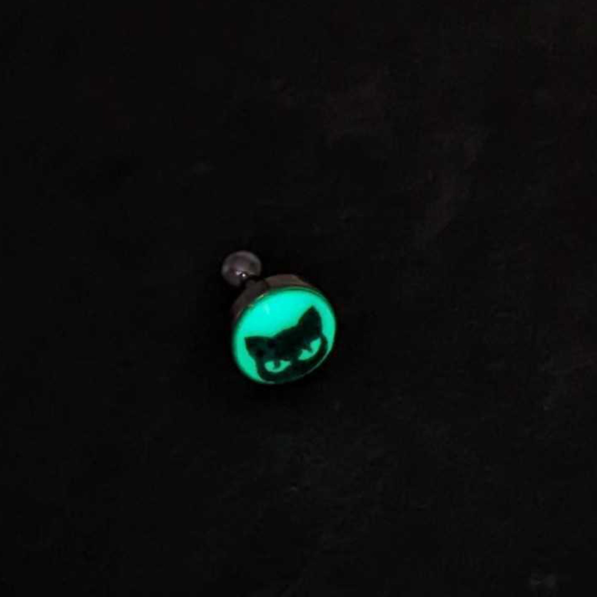 Hypoallergenic jewelry for sensitive skin.16 Gauge Glow in the Dark Peeking Black Cat Tragus Cartilage Earring