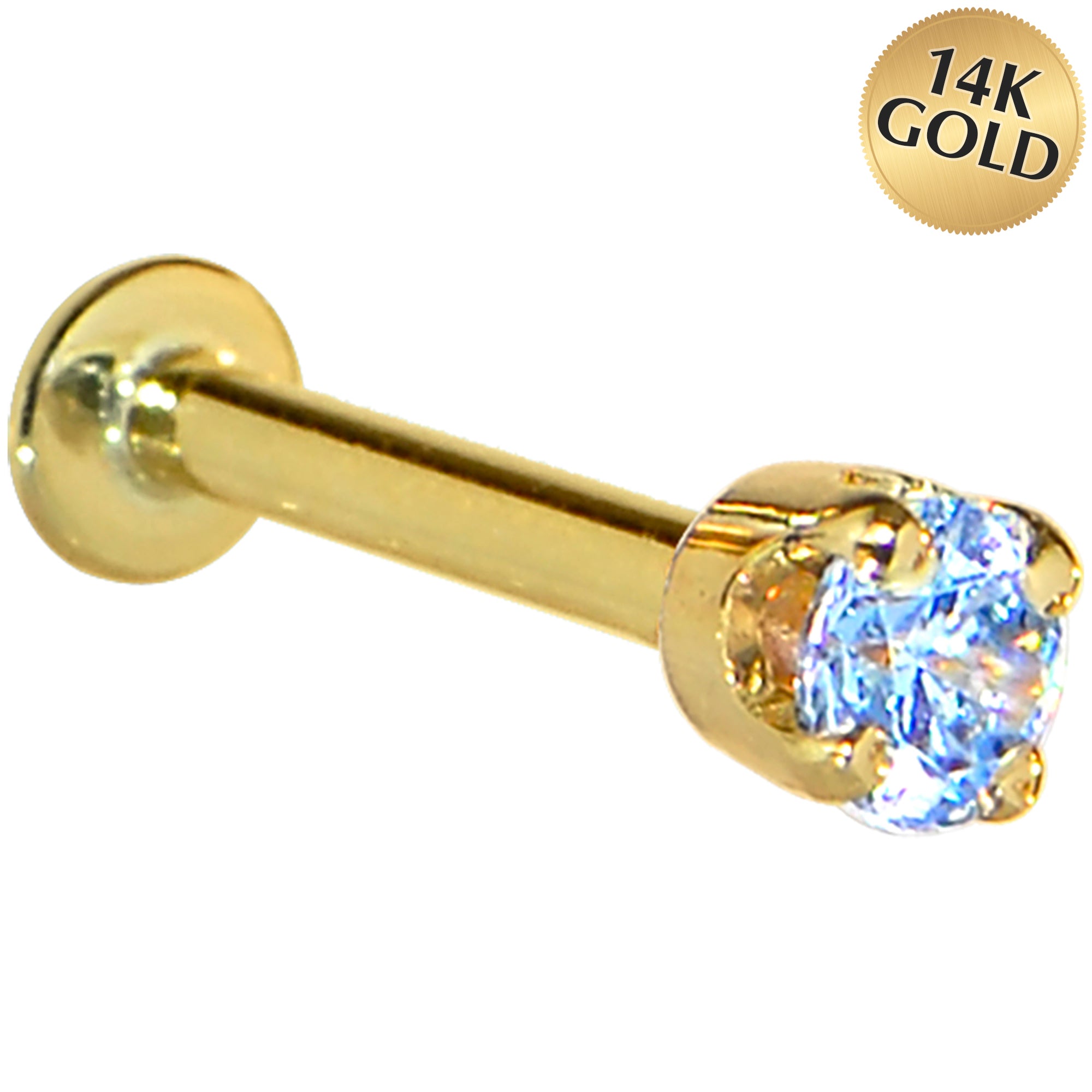 Beautiful cubic zirconia tragus stud earring. Custom solid gold tragus earring. Simply select the length from the drop down above. This gold tragus piercing is available in both 5/16" and 3/16". Quality handmade solid gold Body Jewelry.This item of body jewelry is suitable for tragus piercing, labret, lip and monroe piercings.