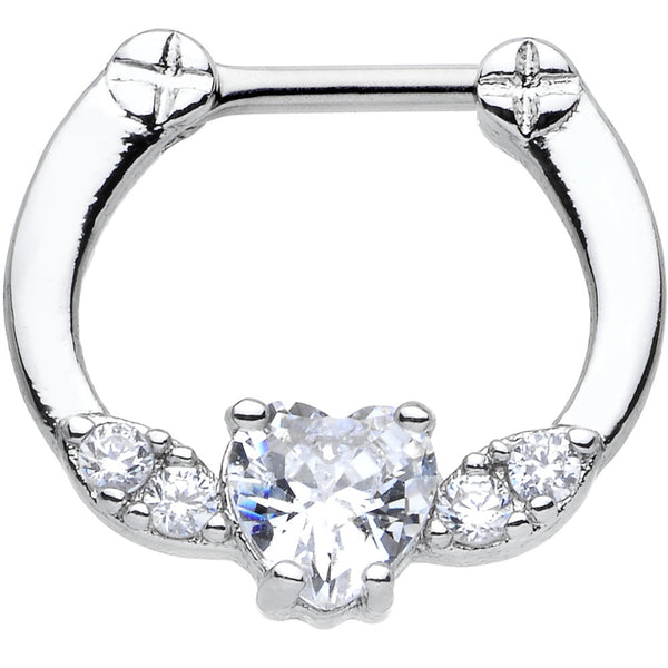 16G Stainless Steel Clear Gem Bright Heart Septum Clicker