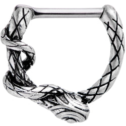 Hypoallergenic jewelry for sensitive skinAdd some sparkle to your look with a stainless steel septum clicker that is decorated with a heart shaped clear gem flanked by smaller clear accents. This 16 gauge septum features a stainless steel straight barbell and hinge that easily opens and clicks closed.