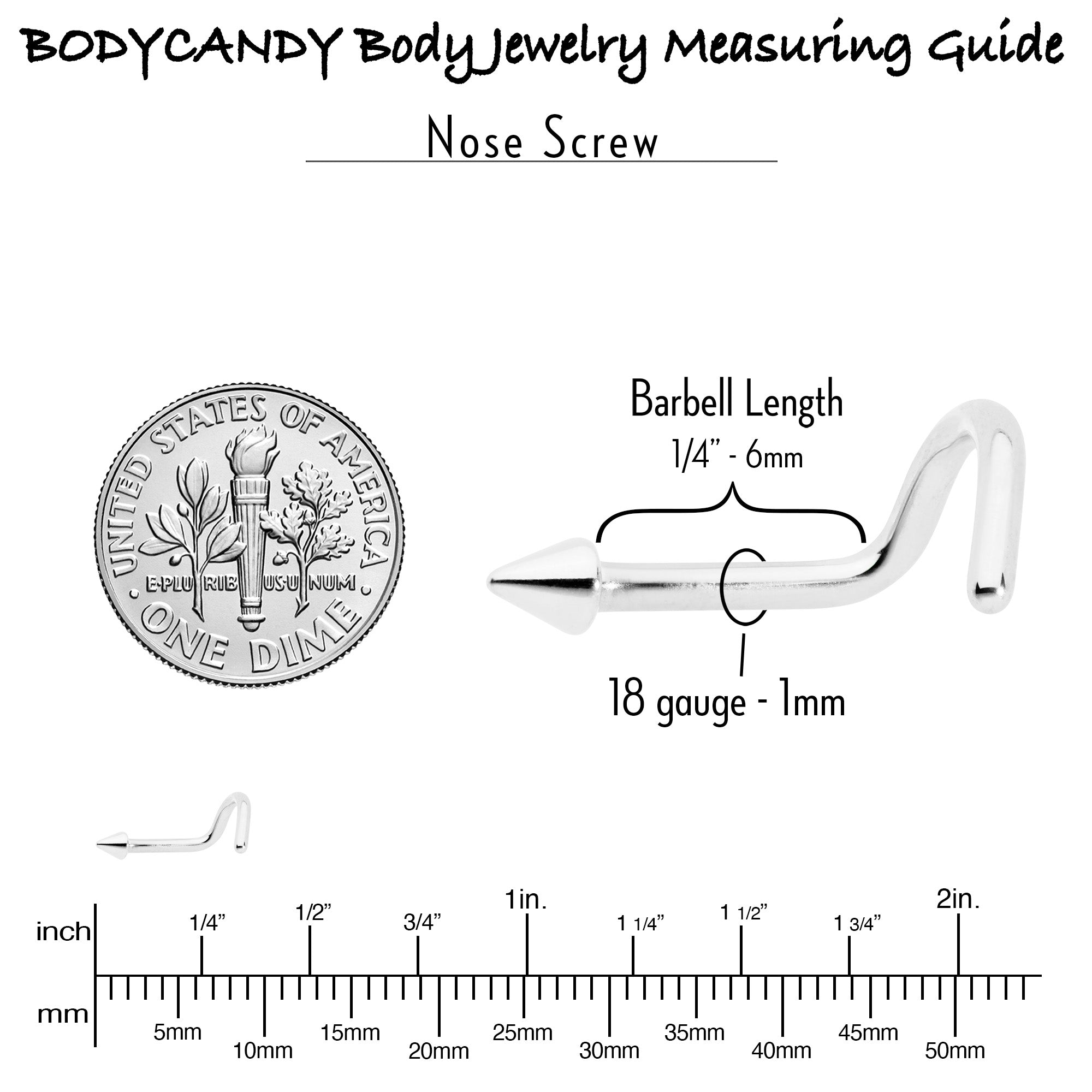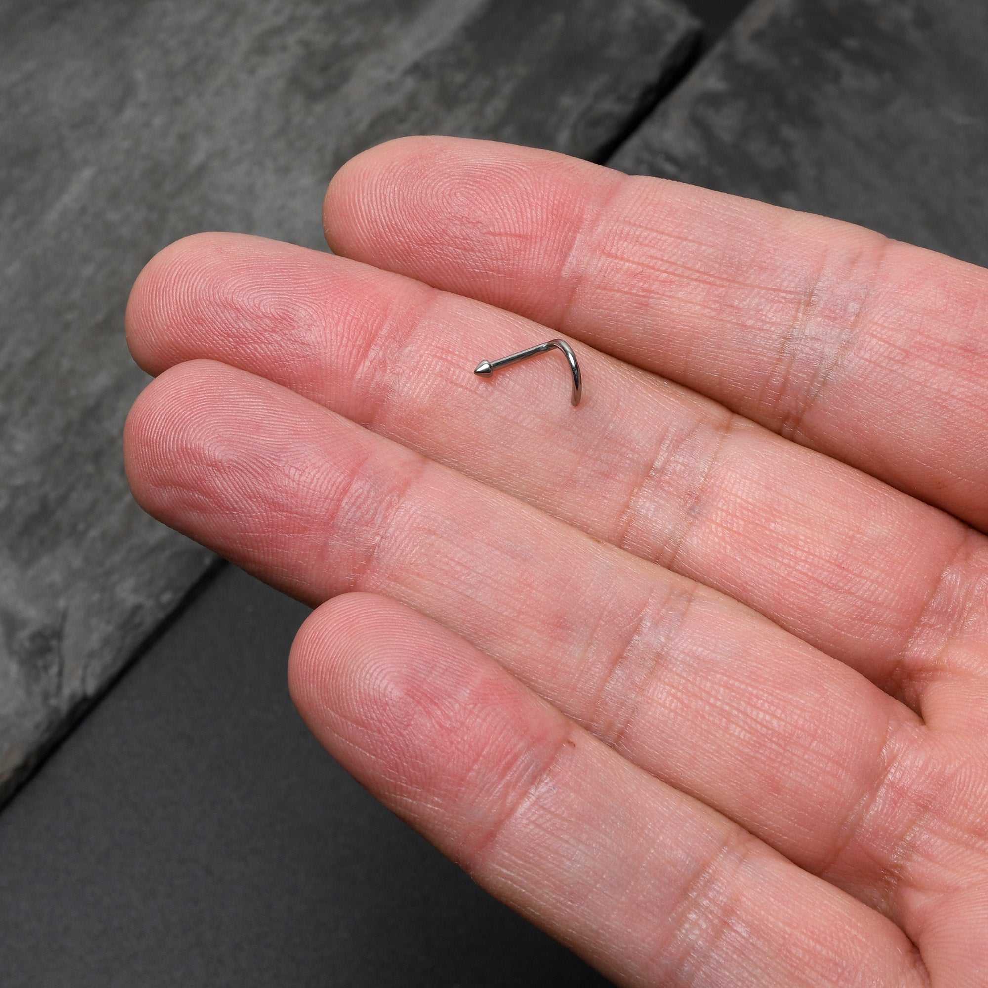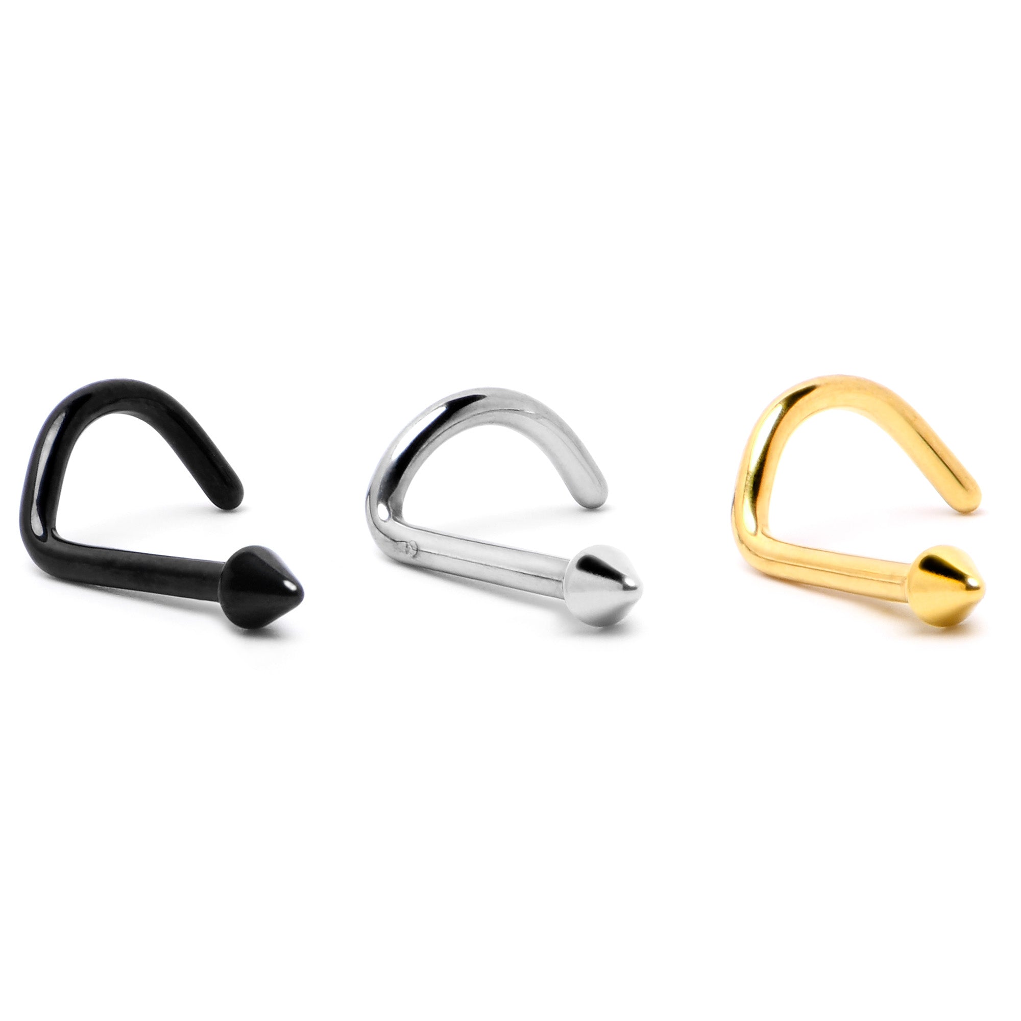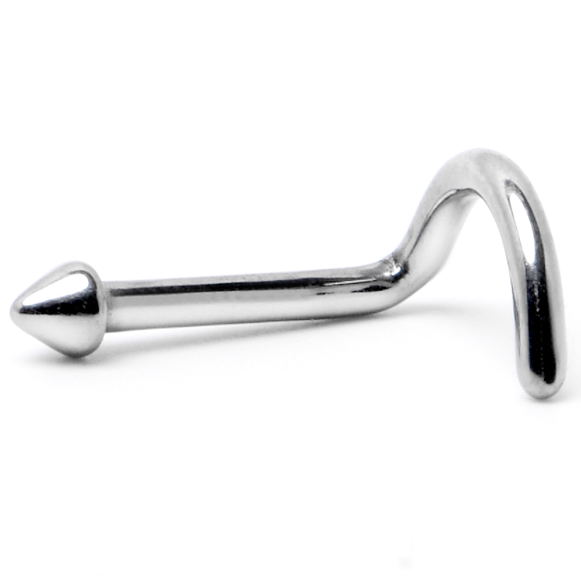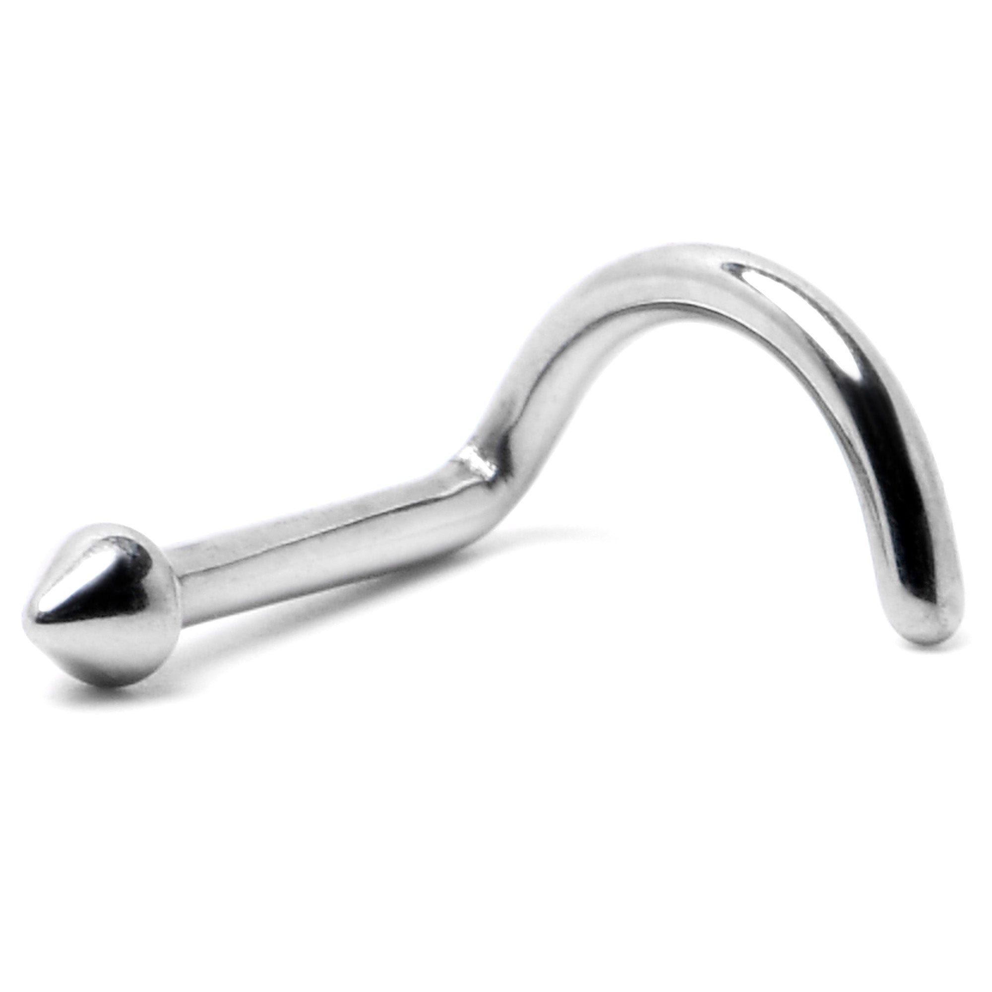 Why go big when you can go stylish and small with this 18 gauge nostril jewelry? It is made with a 6mm durable ASTM F-136 titanium post. It features a petite cone end for an understated yet stylish appearance. It is designed for a left side nostril piercing and also has a curving design that makes for comfortable wear. You will be loving the simple beauty of this diminutive nose piercing ring.