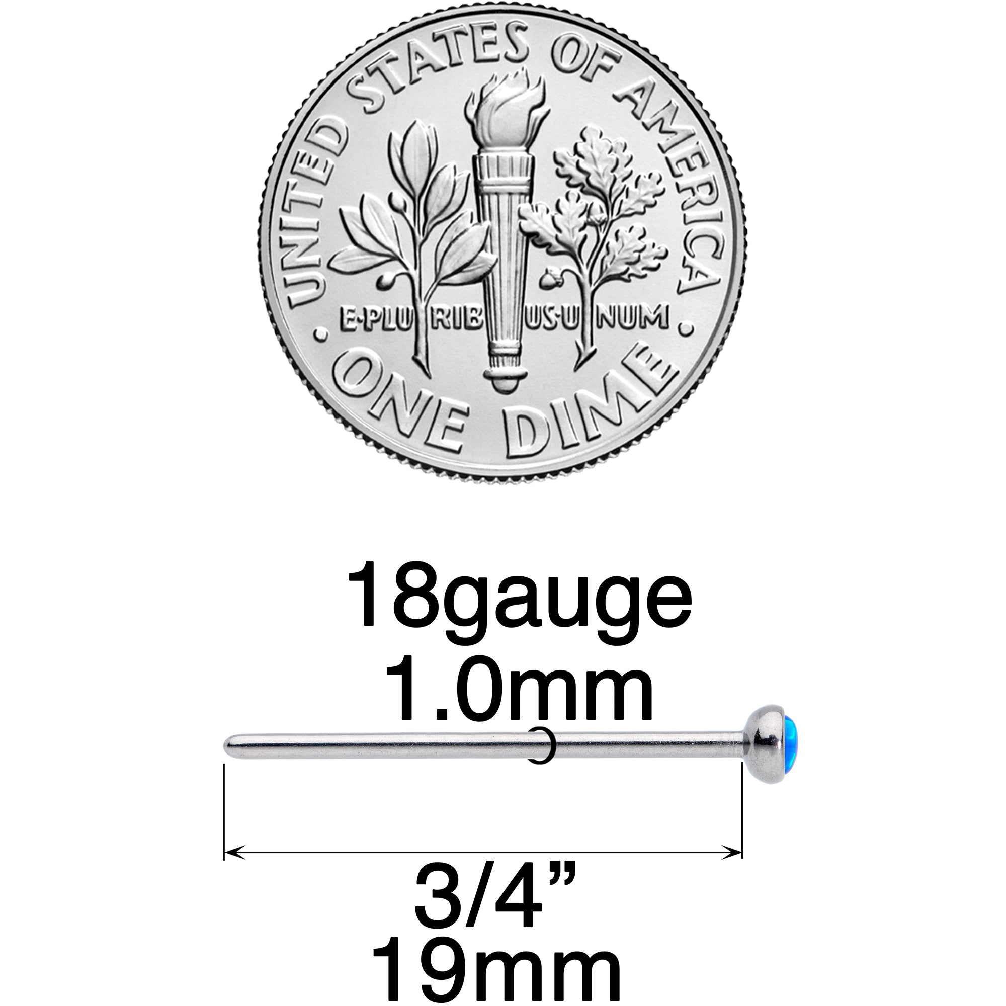 Keep your nostril piercing looking on-trend and feeling fantastic with this 18 gauge straight fishtail nose jewelry, recommended by piercing professionals and designed to be custom bent for a perfect fit every time! It's 19mm long and made with a solid grade 23 implant grade titanium post. It features a 3mm blue synthetic opal end for a look that's just as haute couture as it is hot. With such a thoughtful design that melds fashion and function, this fishtail nose piercing ring is a total catch!
