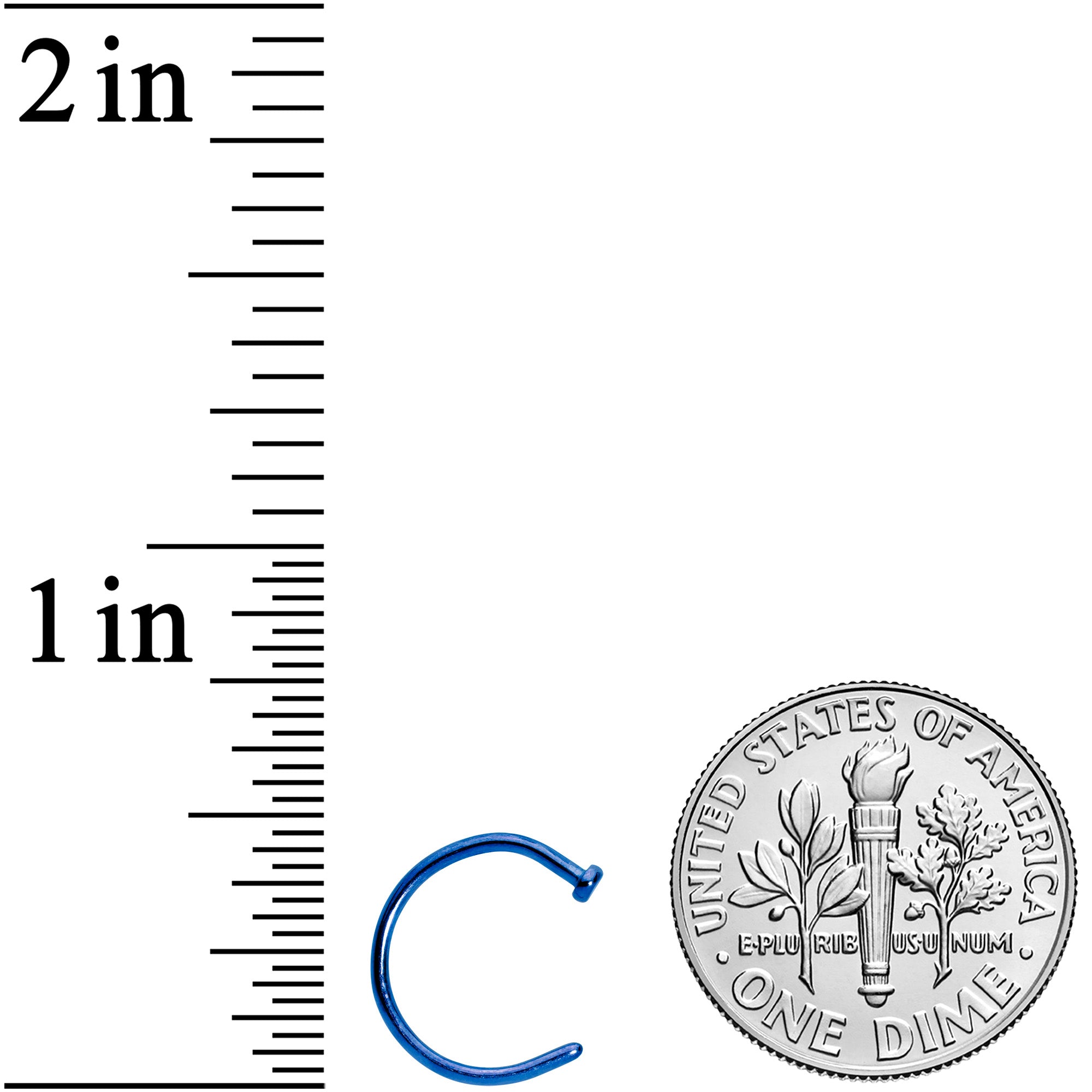 Sometimes the simple things in life are the best. Made of a blue PVD over solid grade 23 implant grade titanium circular ring, this 18 gauge nostril ring is built for comfort as well as serious durability. It measures 10mm length and has a flat top to rest comfortably against your nostril so you'll barely notice that it's there. Simple beauty and simple comfort mean you're going to simply love it!