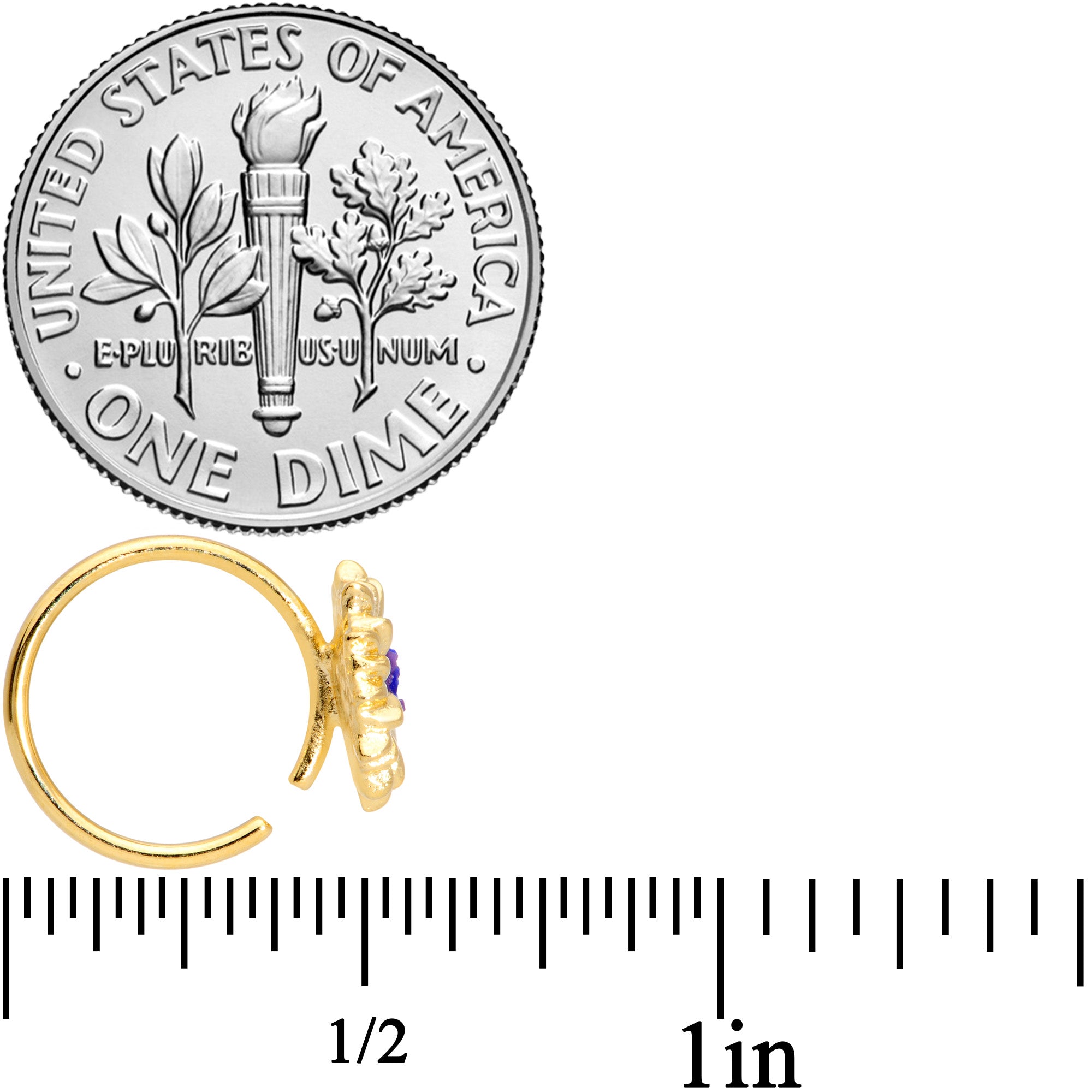 18 Gauge 3/8 Gold Tone Blue Center Sunflower Nose Hoop