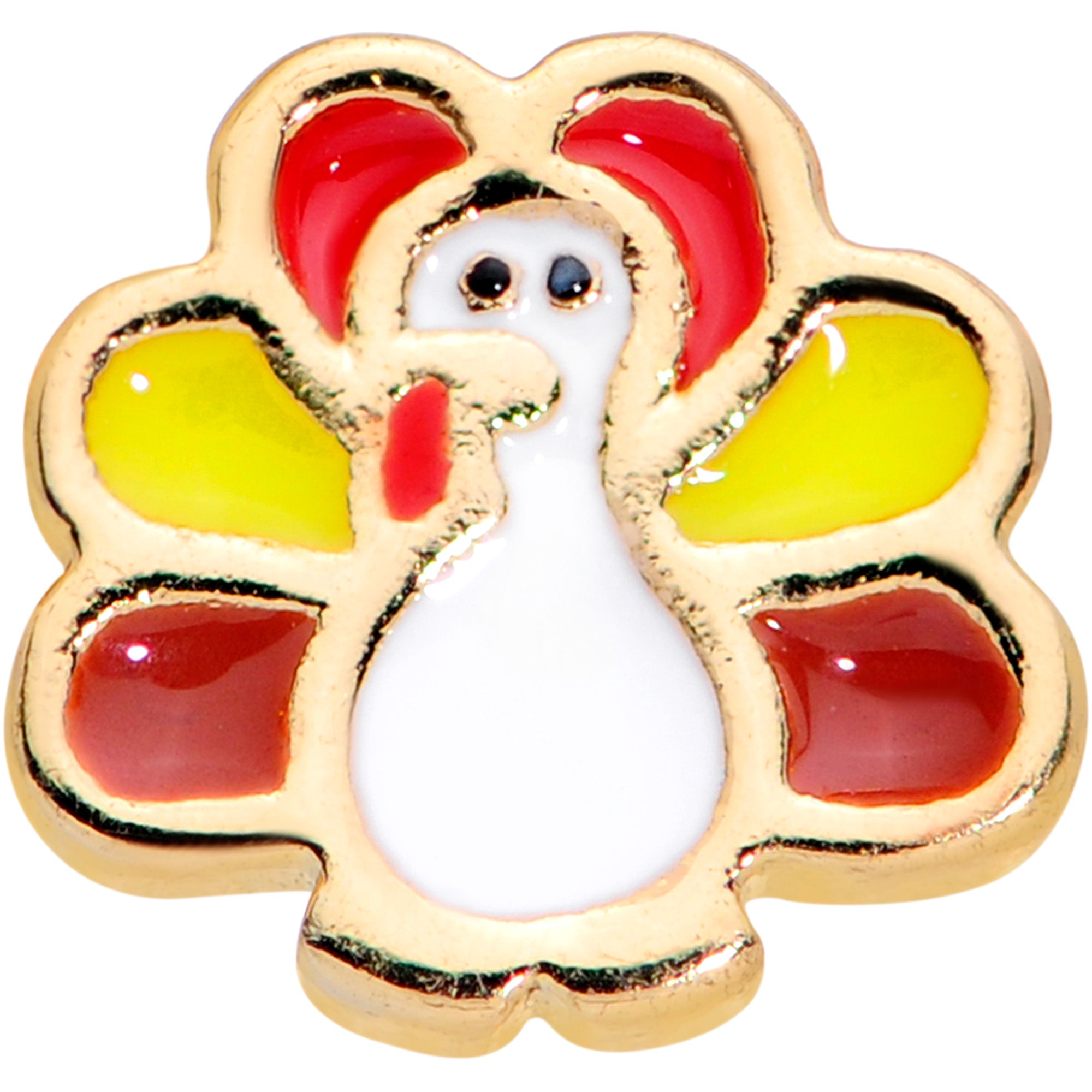 18G 3/8 Gold Tone Turkey Time Thanksgiving Nose Hoop