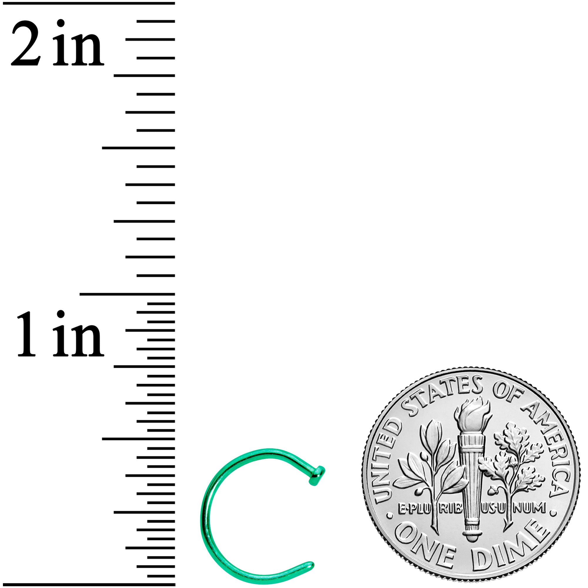 Sometimes the simple things in life are the best. Made of a green PVD over solid grade 23 implant grade titanium circular ring, this 18 gauge nostril ring is built for comfort as well as serious durability. It measures 10mm length and has a flat top to rest comfortably against your nostril so you'll barely notice that it's there. Simple beauty and simple comfort mean you're going to simply love it!