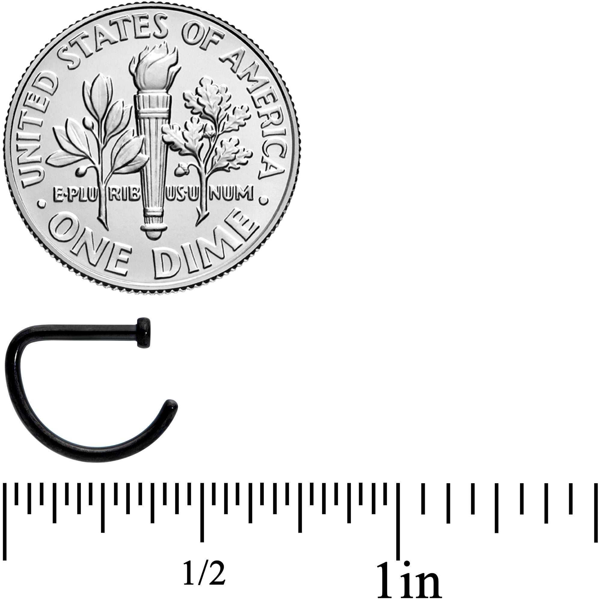 This 18 gauge nostril ring has everything you could possibly ask for! It's made with an 8mm black PVD over solid grade 23 implant grade titanium semicircular ring with a flat disc end. Your nostril piercing is covered with this simple and stylish nose jewelry!