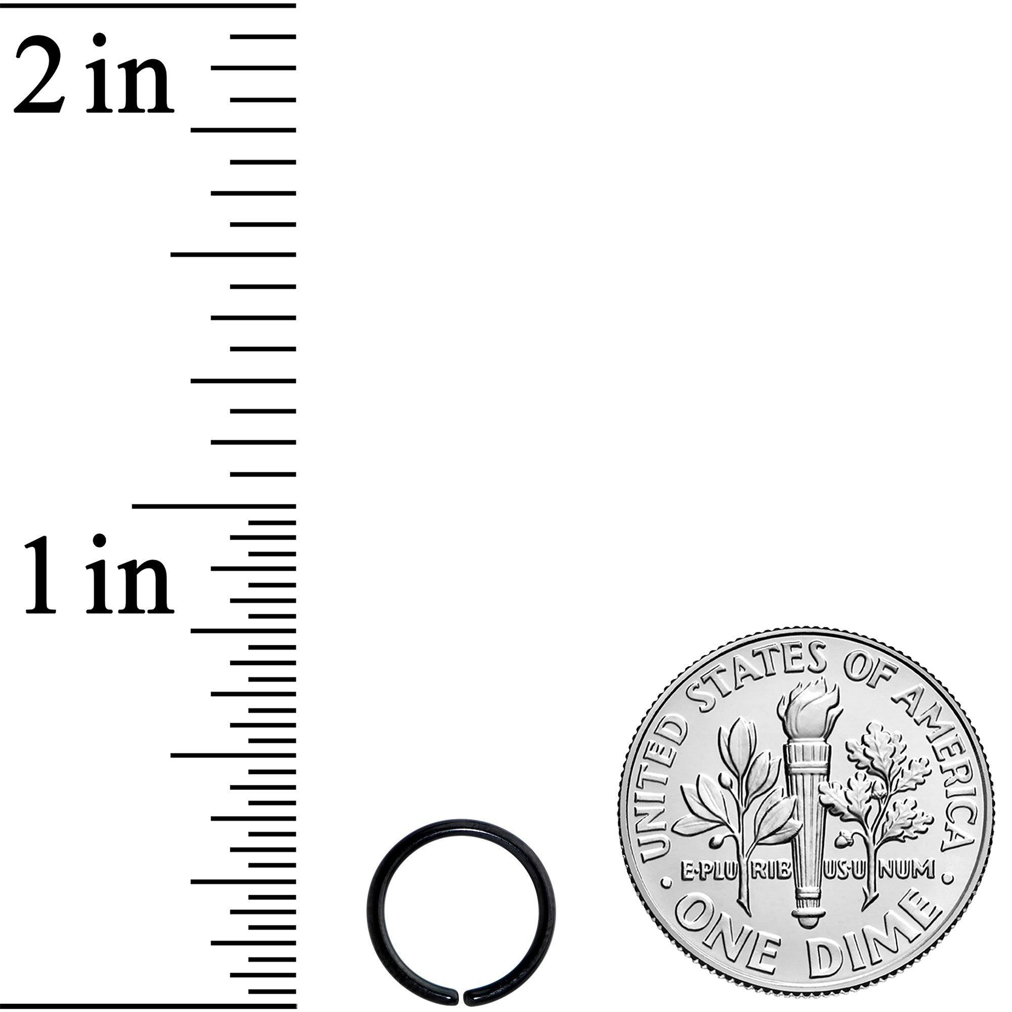 Sometimes we all need closure....sometimes we just need some awesome jewelry like this 18 gauge nostril ring! It's made with an 8mm black PVD over solid grade 23 implant grade titanium circular ring. It features durable materials as well as simple style that never goes out of fashion. It also features rounded ends to make insertion and removal super comfortable. This hoop ring is super easy to insert and remove - simply twist the ring open, insert, and then twist gently shut again. Put some quality elegance in your nose piercing with this understated nostril piercing ring! This bendable titanium hoop can be used for multiple piercings including lip ring, cartilage, daith, rook, tragus and nose hoop.