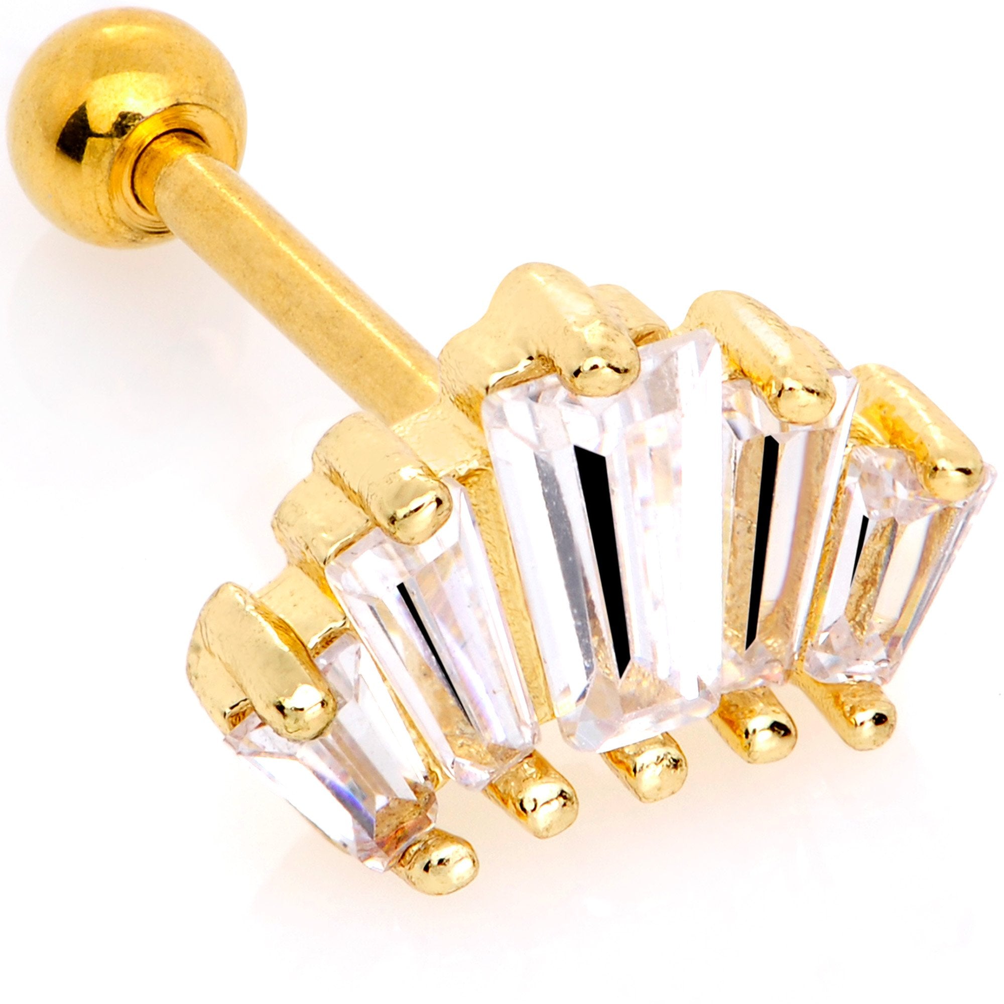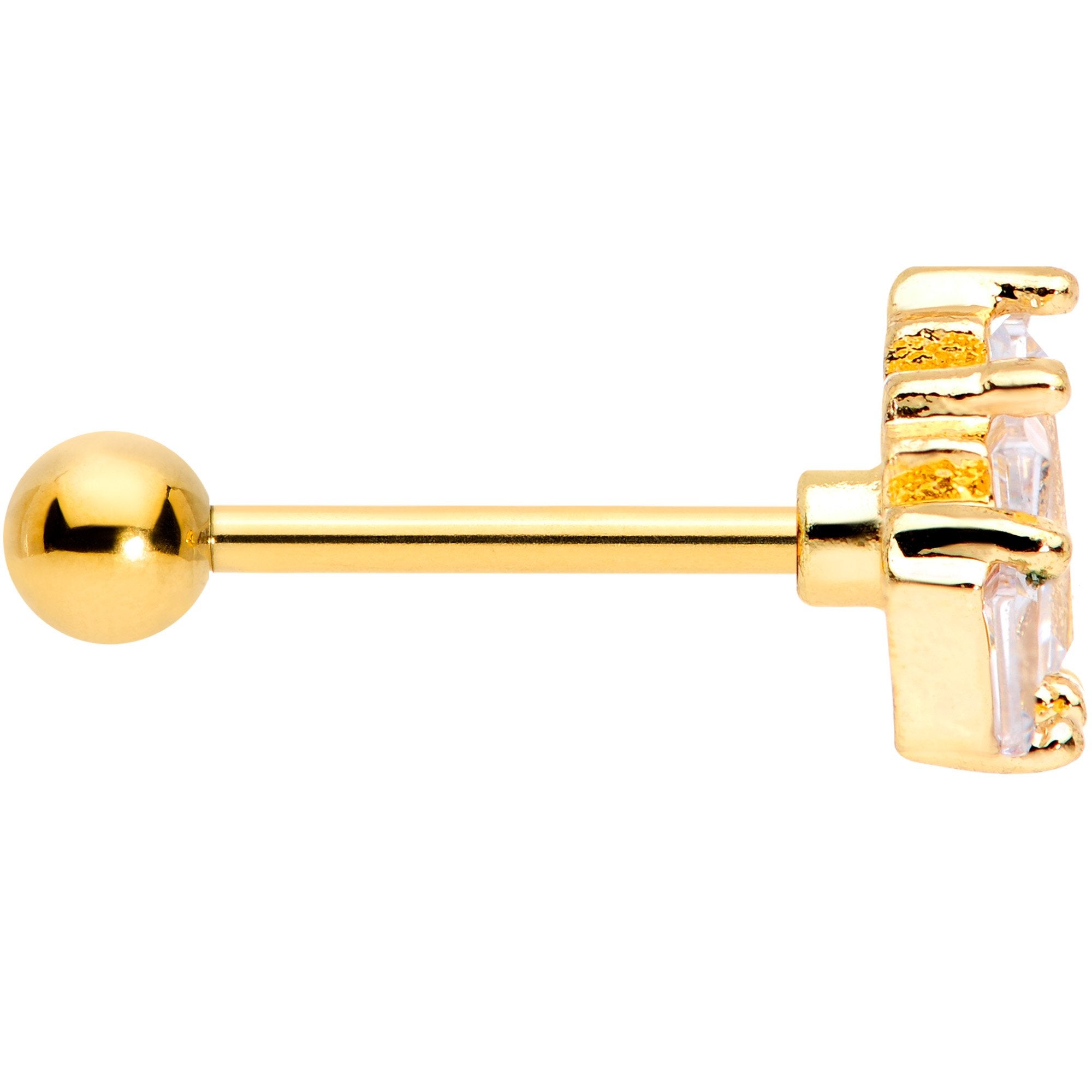 18G 5/16 Clear CZ Gold Tone Crown Cartilage Tragus Earring