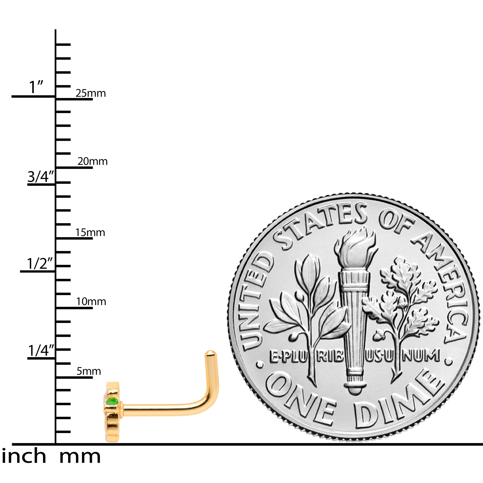 18G 5/16 Green Gold Tone Lucky Leprechaun L Shaped Nose Ring