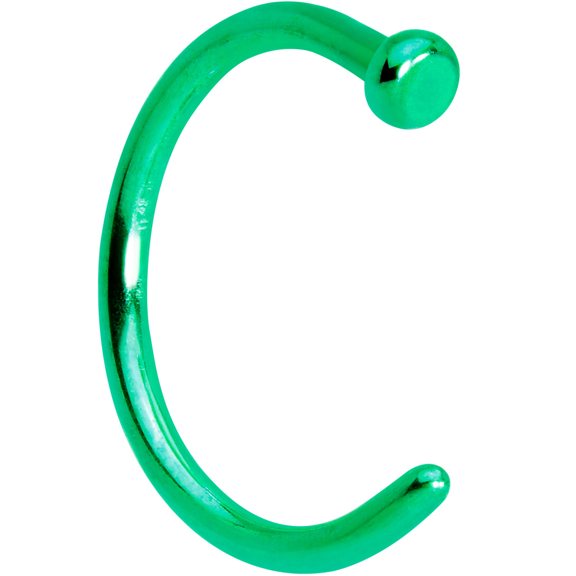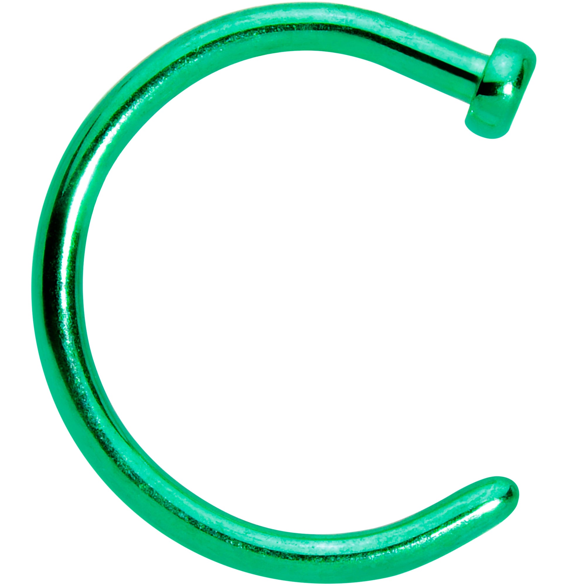 Sometimes the simple things in life are the best. Made of a green PVD over solid grade 23 implant grade titanium circular ring, this 18 gauge nostril ring is built for comfort as well as serious durability. It measures 8mm length and has a flat top to rest comfortably against your nostril so you'll barely notice that it's there. Simple beauty and simple comfort mean you're going to simply love it!