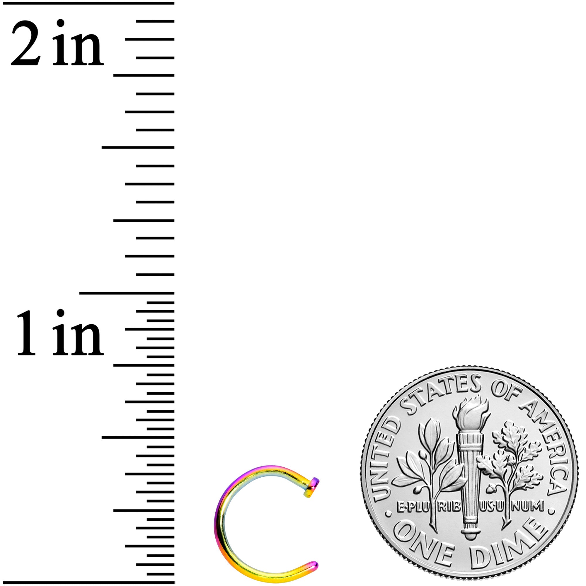 Sometimes the simple things in life are the best. Made of a rainbow PVD over solid grade 23 implant grade titanium circular ring, this 18 gauge nostril ring is built for comfort as well as serious durability. It measures 8mm length and has a flat top to rest comfortably against your nostril so you'll barely notice that it's there. Simple beauty and simple comfort mean you're going to simply love it!