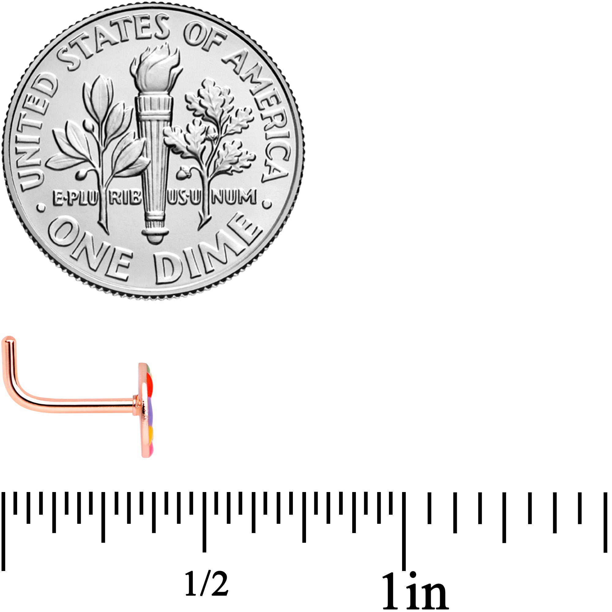 18G 5/16 Rose Gold Tone Rainbow Peace Sign L Shaped Nose Ring