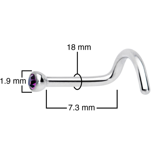 Don't let your nostril piercing get screwed up by inferior jewelry - grab one of these 18 gauge nostril rings instead! It features a 1/4" length at the bend post and is made with solid Grade 23 implant grade titanium. This subtle but stylish nose ring features a 2mm fuschia press fit gem end for a look that's fashionable but not over the top. It is designed for a left side nostril piercing and has a curving design that makes for comfortable wear and easy insertion. Comfortable, colorful, and quality - it's everything you could want for your nostril piercing in one petite package!