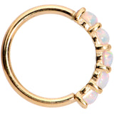 You'll feel like the belle of the ball while you're wearing this 18 gauge universal body jewelry encrusted with five white synthetic opals. The 1/4" circular ring is made with 14k yellow gold, and is bendable for ease of use. To insert ring simply twist then squeeze rounded ends together and you're ready to go. Can be worn in a variety of piercings including your cartilage, daith, tragus, lip, nose, and any other body piercing that is a perfect fit for you!