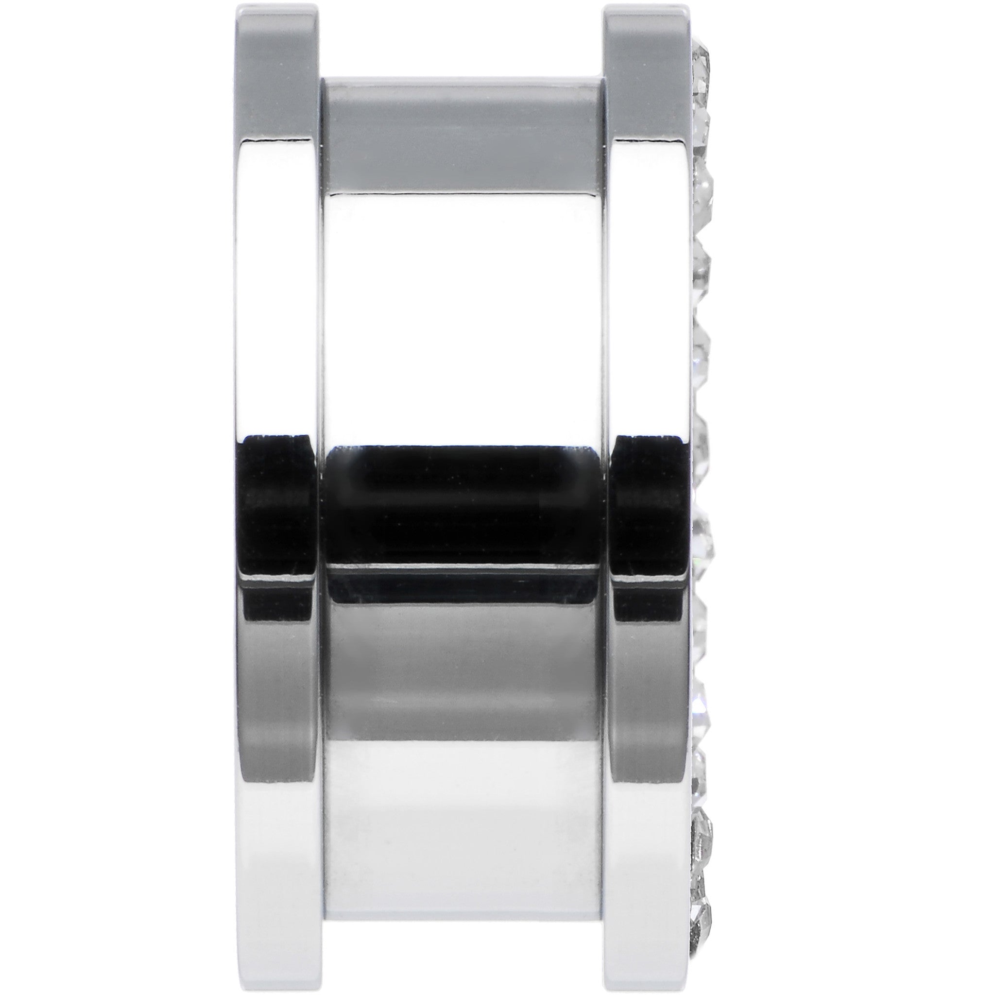 Hypoallergenic jewelry for sensitive skinAnchor your stretched lobes with this screw fit tunnel plug. This 316L surgical grade stainless steel ear plug features a glittering pink anchor design within the body jewelry's tunneled structure surrounded by a circle of clear sparkling accents. This 11/16" tunnel is sold individually, so please make sure to select a quantity of two (2) when ordering if you desire a pair.