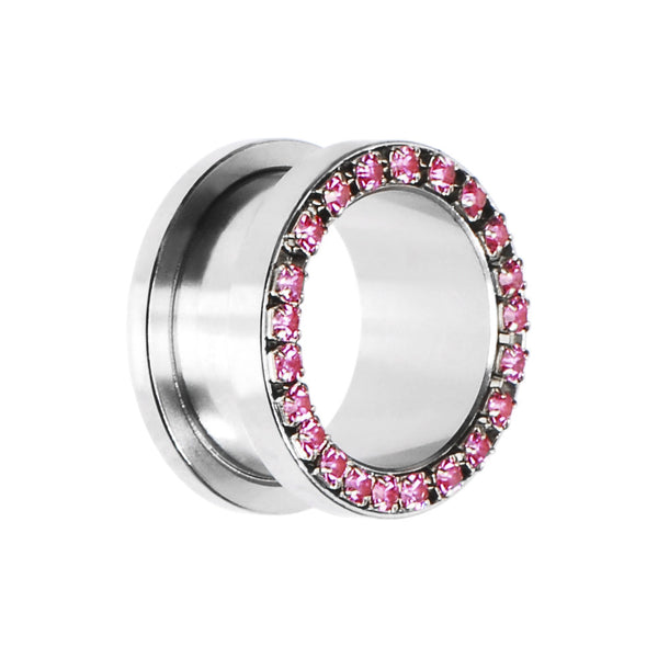 18mm Stainless Steel Pink Gem Screw Fit Tunnel