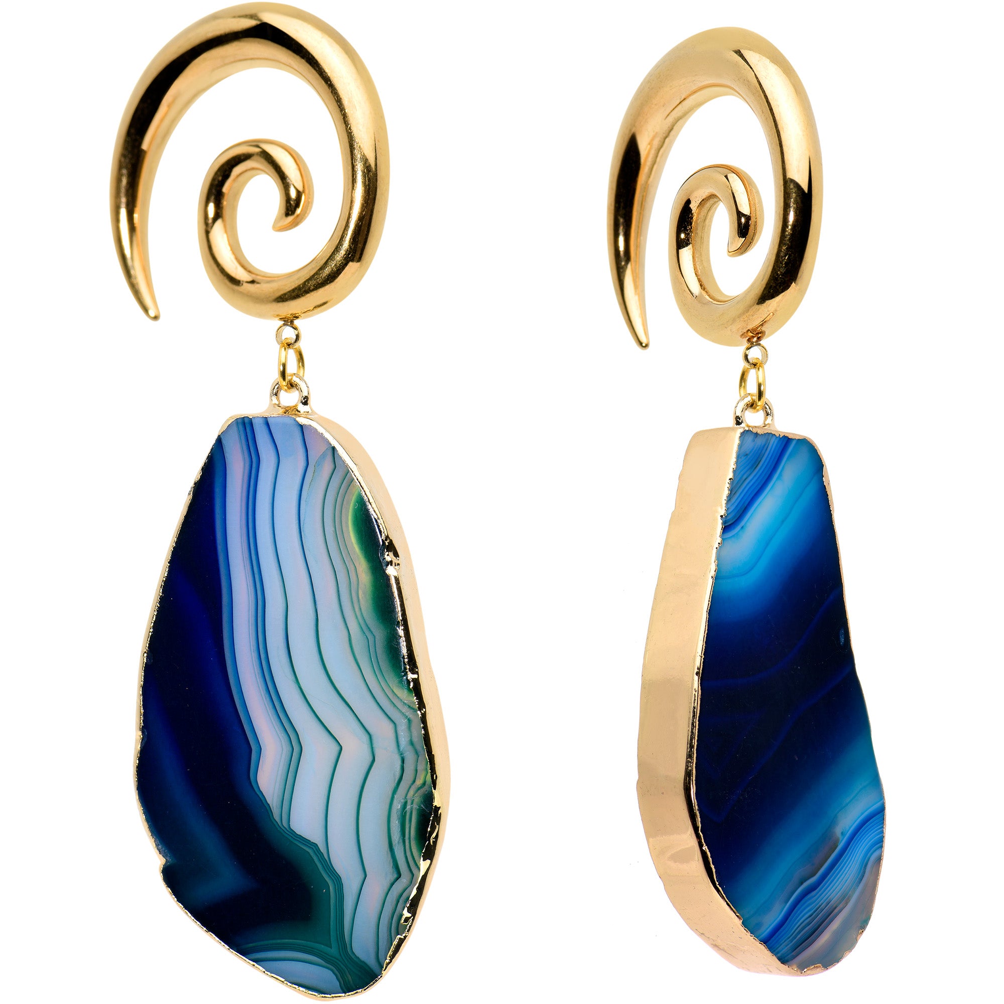 2G Gold Tone Blue Marble Onyx Stone Spiral Taper Ear Weights