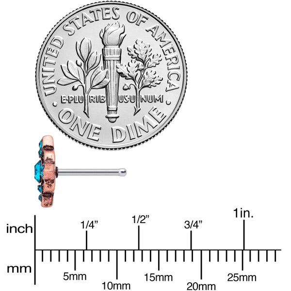 20 Gauge 1/4 Aqua Gem Rose Gold Tone Renaissance Nose Bone