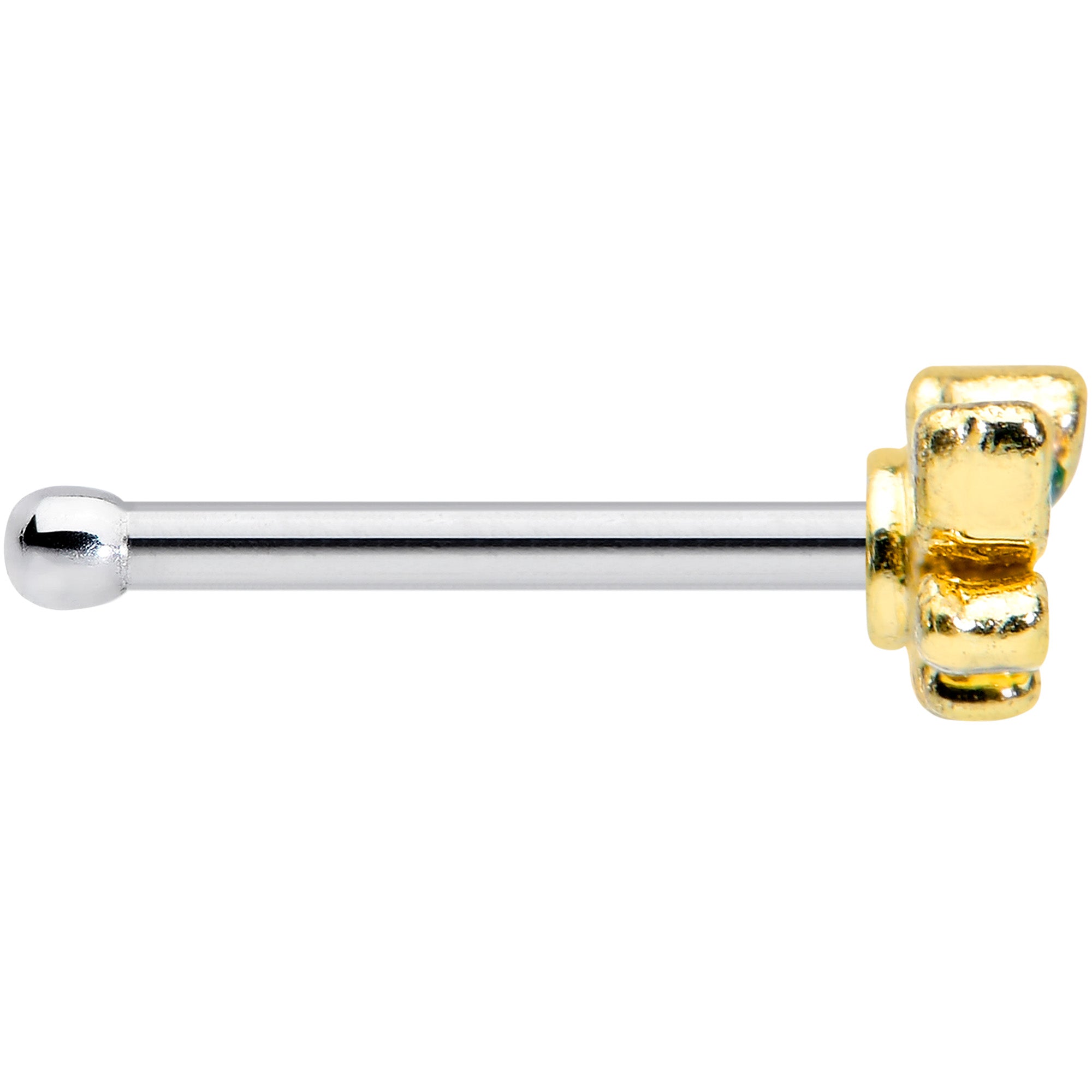 Nom, nom, nom...the alligator on this 20 gauge nostril ring is hungry for style! It's made with a 6mm durable 316L surgical grade stainless steel straight post. It features an alligator charm in a gold tone setting, paved with green gems and featuring a black gem eye. The alligator has its mouth open, giving it a whimsically hungry appearance. This is one nose piercing ring you'll be hungry to wear!
