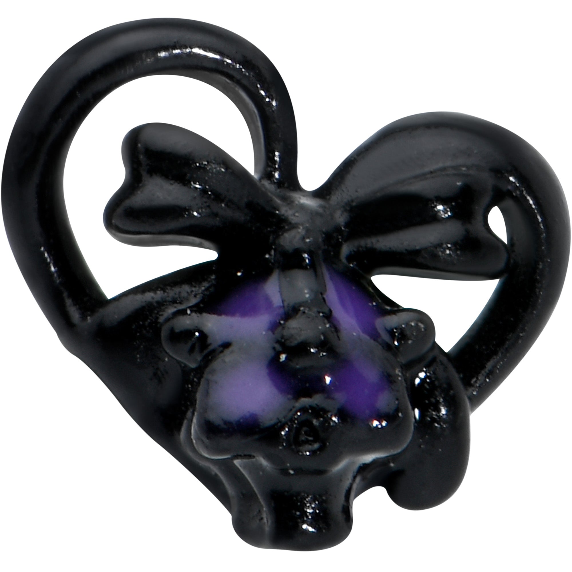 20 Gauge 1/4 Black Purple Skull Bow Heart Nose Bone