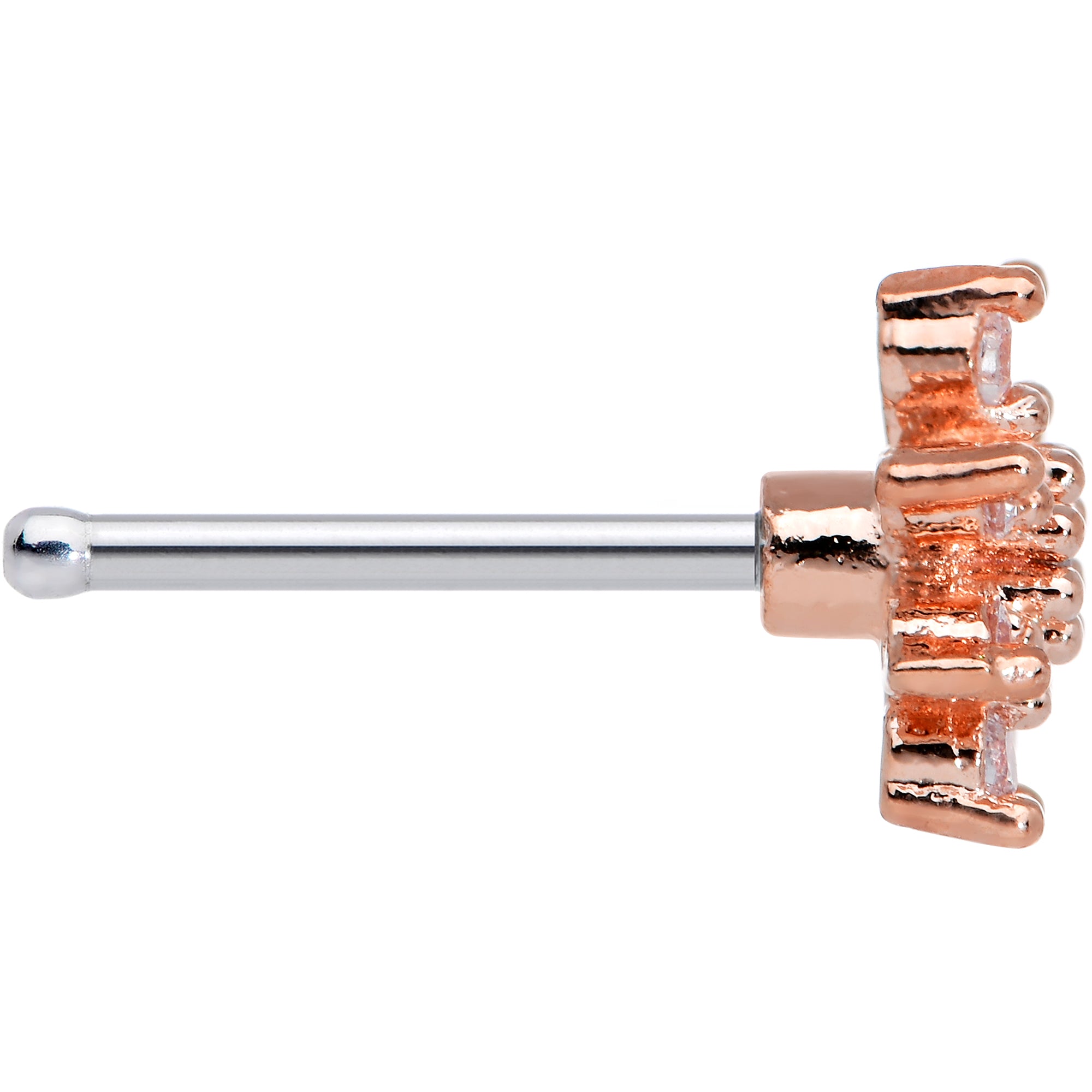 20 Gauge 1/4 Clear CZ Gem Stylish Rose Flower Nose Bone