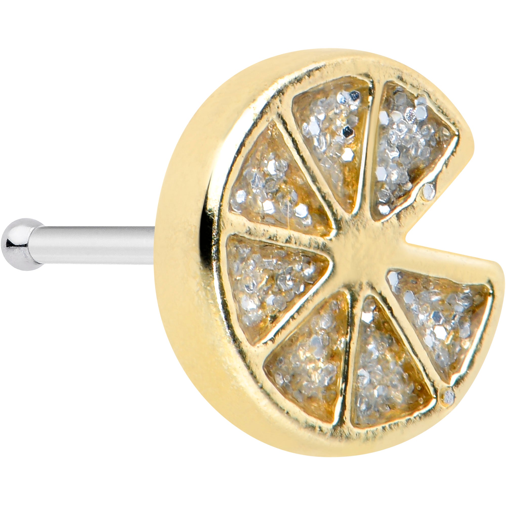 This 20 gauge nose ring is sweet, tasty and looks delicious! It's made with a 6mm durable 316L surgical grade stainless steel straight post. It features an orange slice charm, with clear gem pulp detailing. In fact, it looks so yummy that it appears as if someone has taken a wedge already! If you're ready to get your citrus fruit on this summer, pick the yummy orange slice on this nostril piercing jewelry!