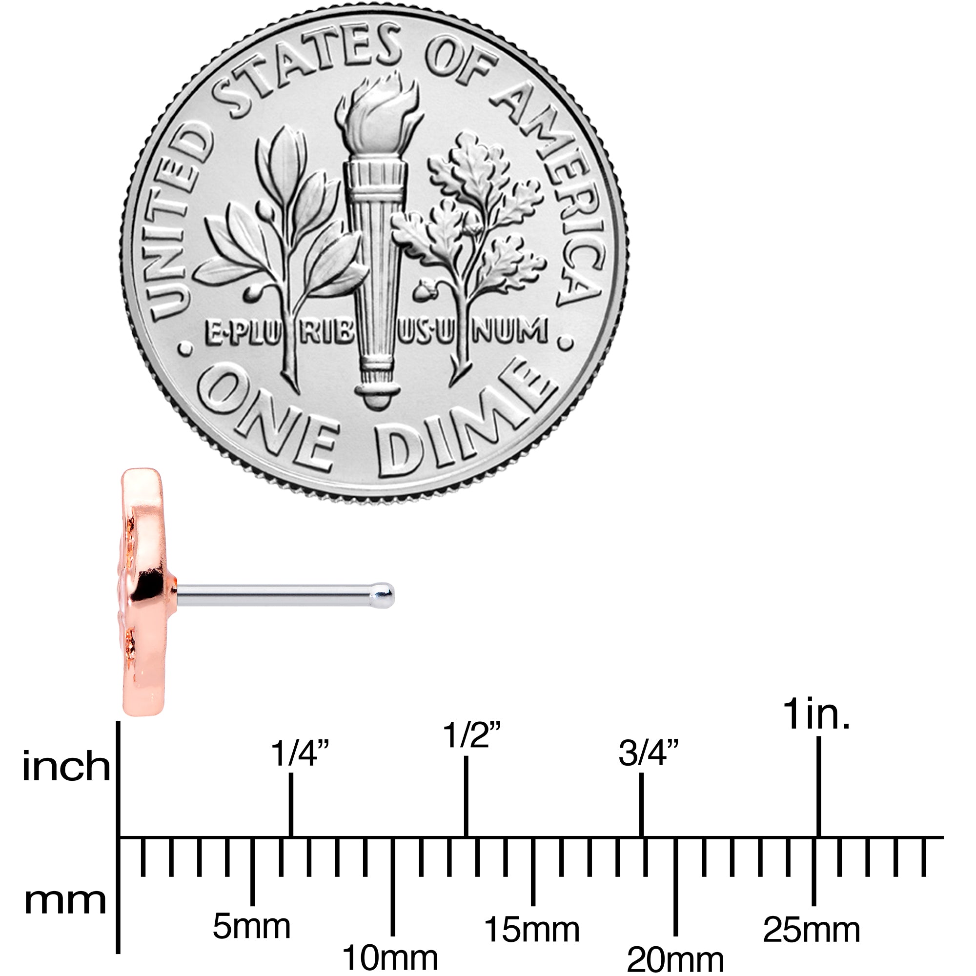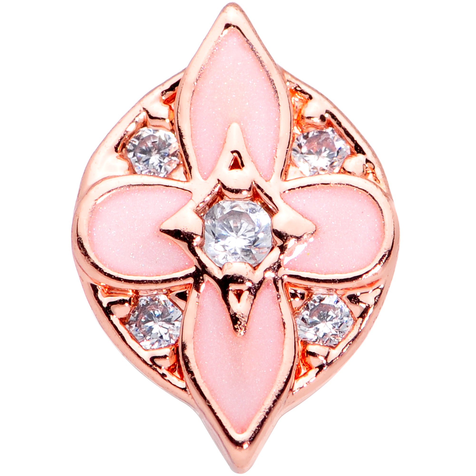 20G 1/4 Clear Gem Rose Gold Tone Pink Cross Nose Bone