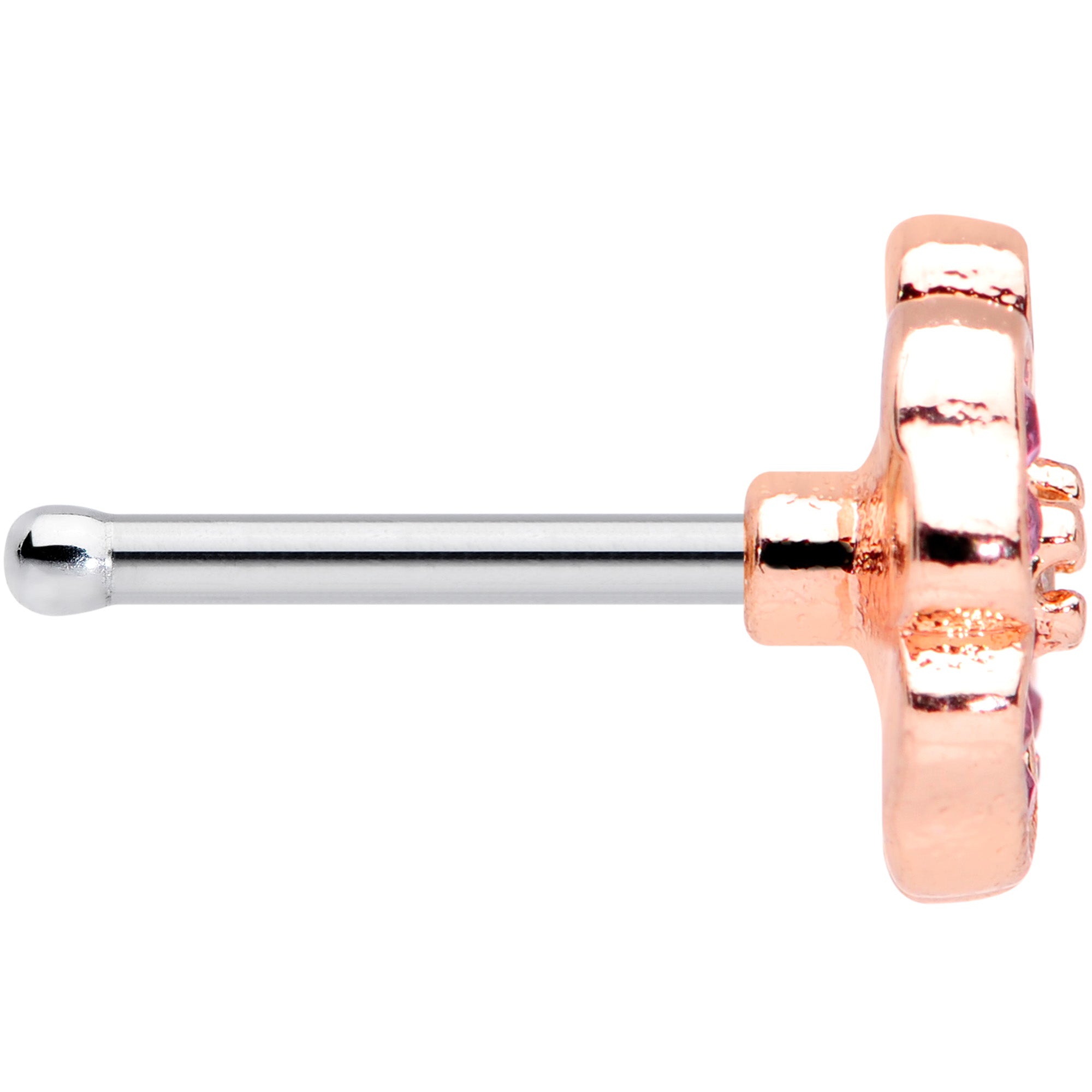 20G 1/4 Clear Pink Gem Rose Gold Tone Heart Flower Nose Bone