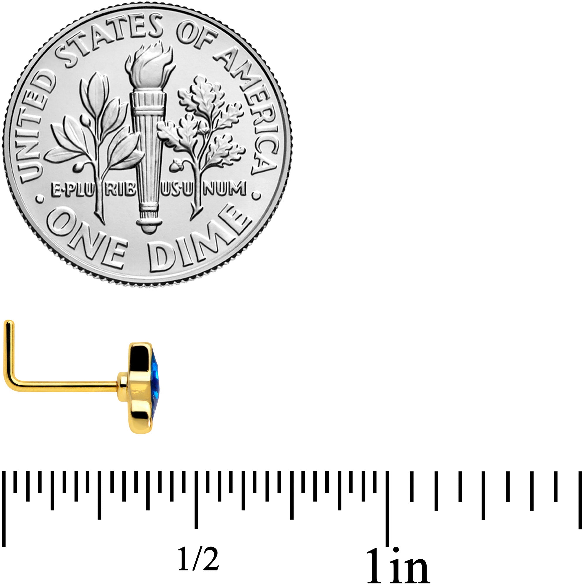 The mermaid who left her tail on this 20 gauge nostril jewelry had style to spare! It's made with a 6mm length at the bend gold tone PVD over 316L surgical grade stainless steel L-shaped post. The end features a mermaid's tail charm in glittery, pearlescent blue. It's designed to make insertion and removal a breeze while making for comfortable wear, as well as offering tons of nautical glamour. Add some summer style to your nostril piercing with this marvelous mermaid's tail nostril ring!