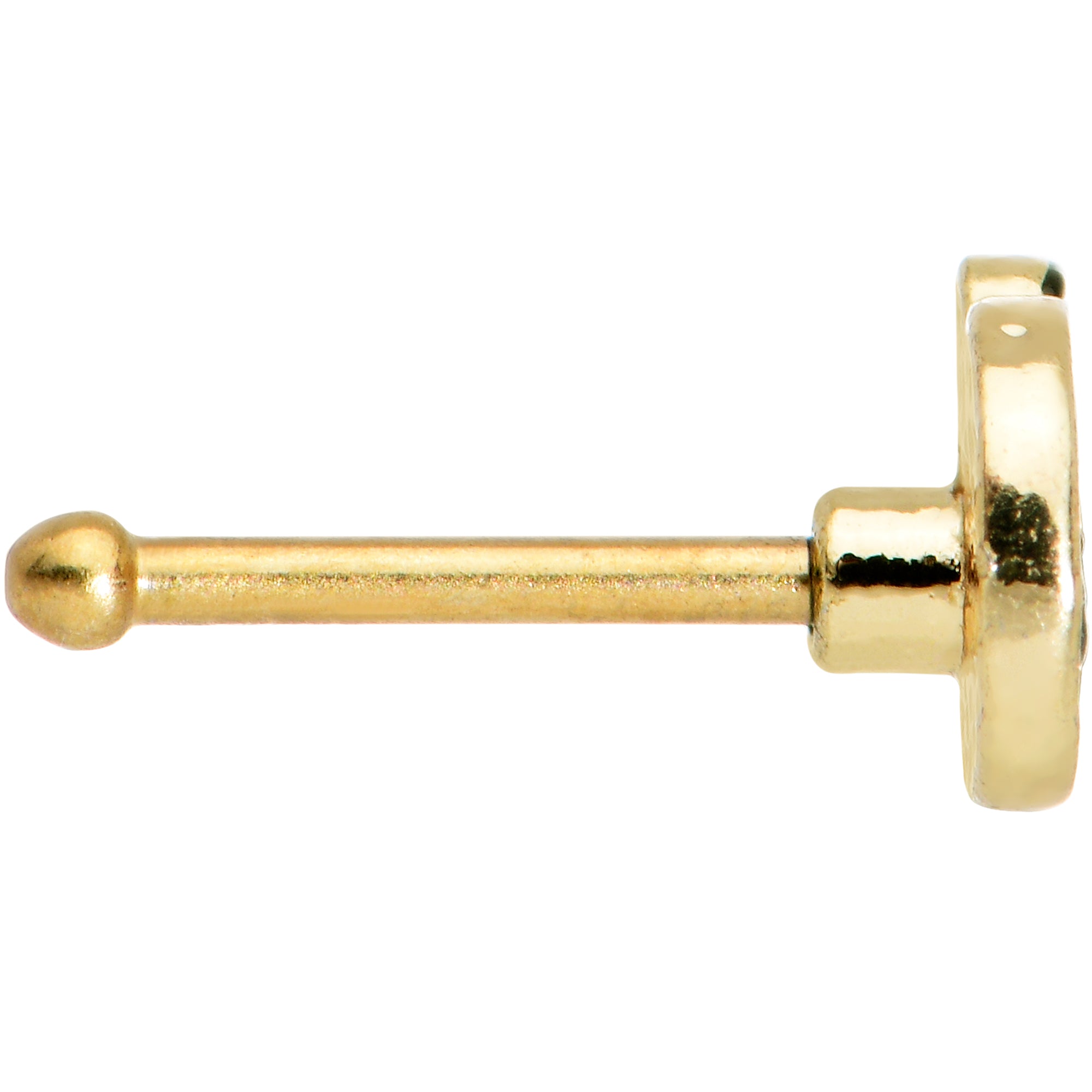 Don't worry about watching out for black cats this Halloween when you wear this 20 gauge nostril ring; you'll be wearing one all the time! Made with a 6mm gold tone PVD over 316L surgical grade stainless steel straight post, this nose piercing ring features a witchy black cat charm in a jack 'o lantern that will be a spooky surprise for anyone you meet!