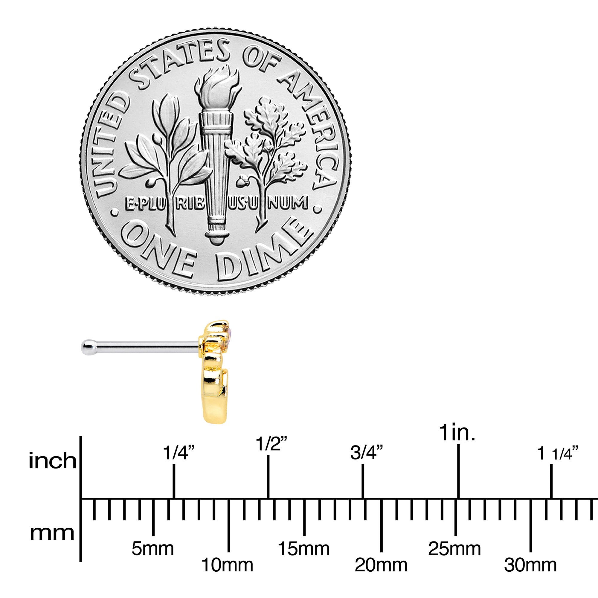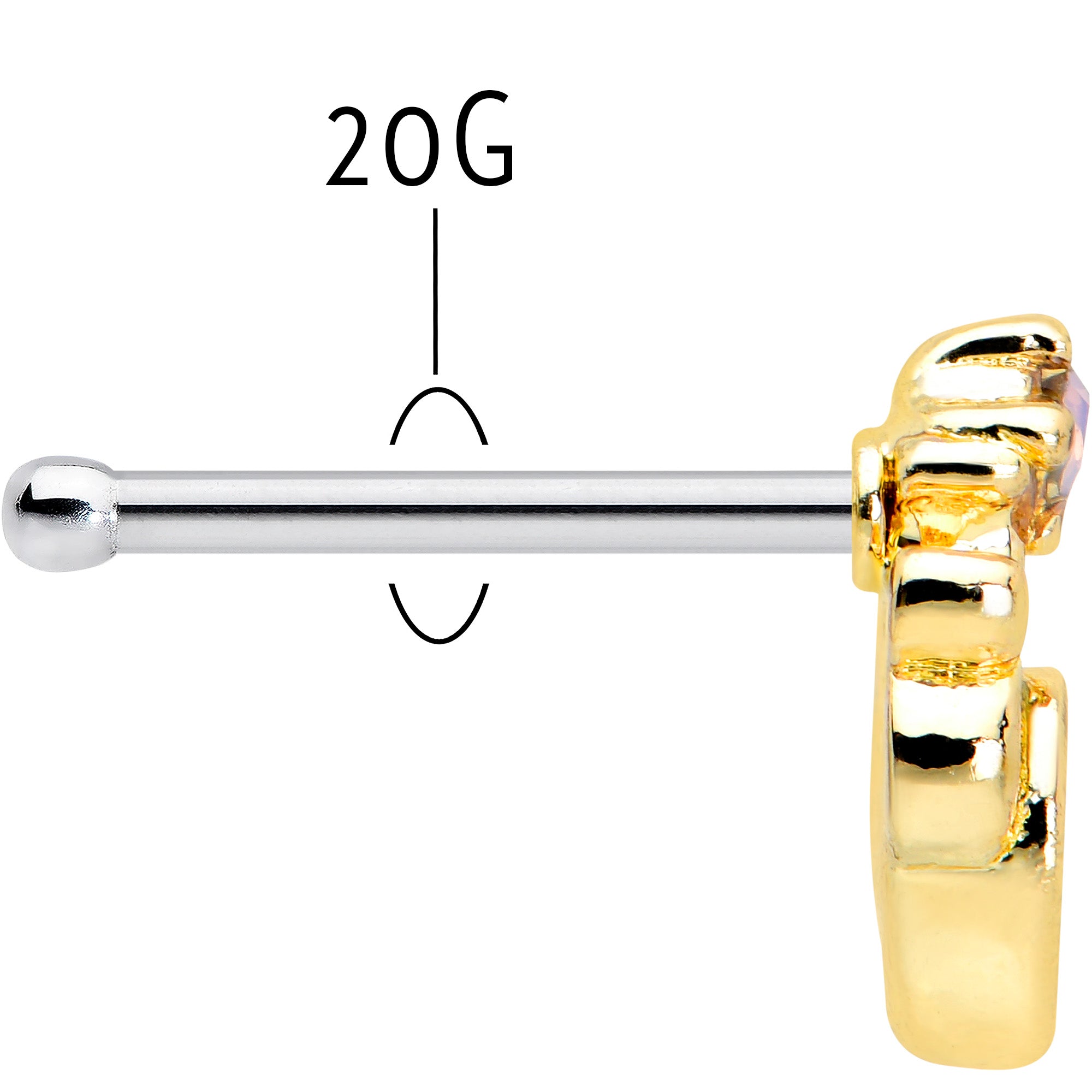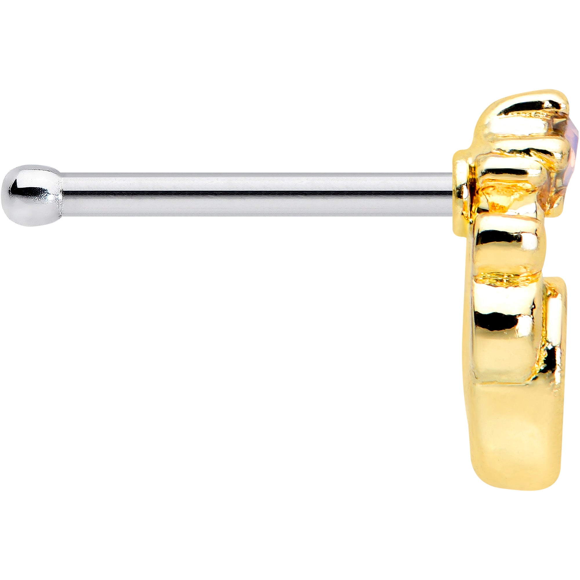 You'll be looking springtime stylish all year long with this 20 gauge nostril ring! It's made with a 6mm durable 316L surgical grade stainless steel straight post. It features a green gem charm, set among airy, openwork detailing and topped with a pink orb for a truly vernal appearance. Add some springtime color to your look with this elegantly simple nose piercing ring!