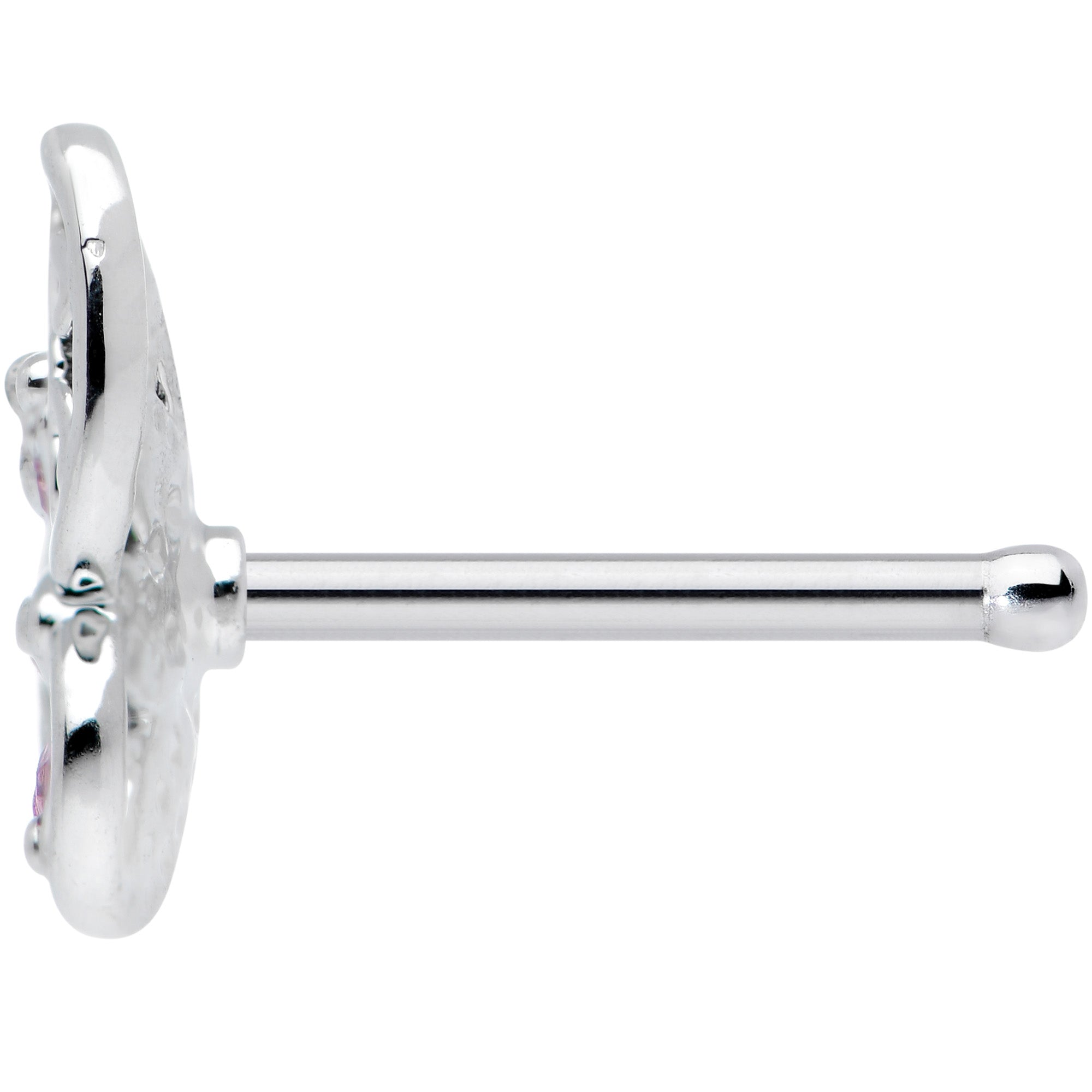 20 Gauge 1/4 Pink Gem Lacy Butterfly Nose Bone