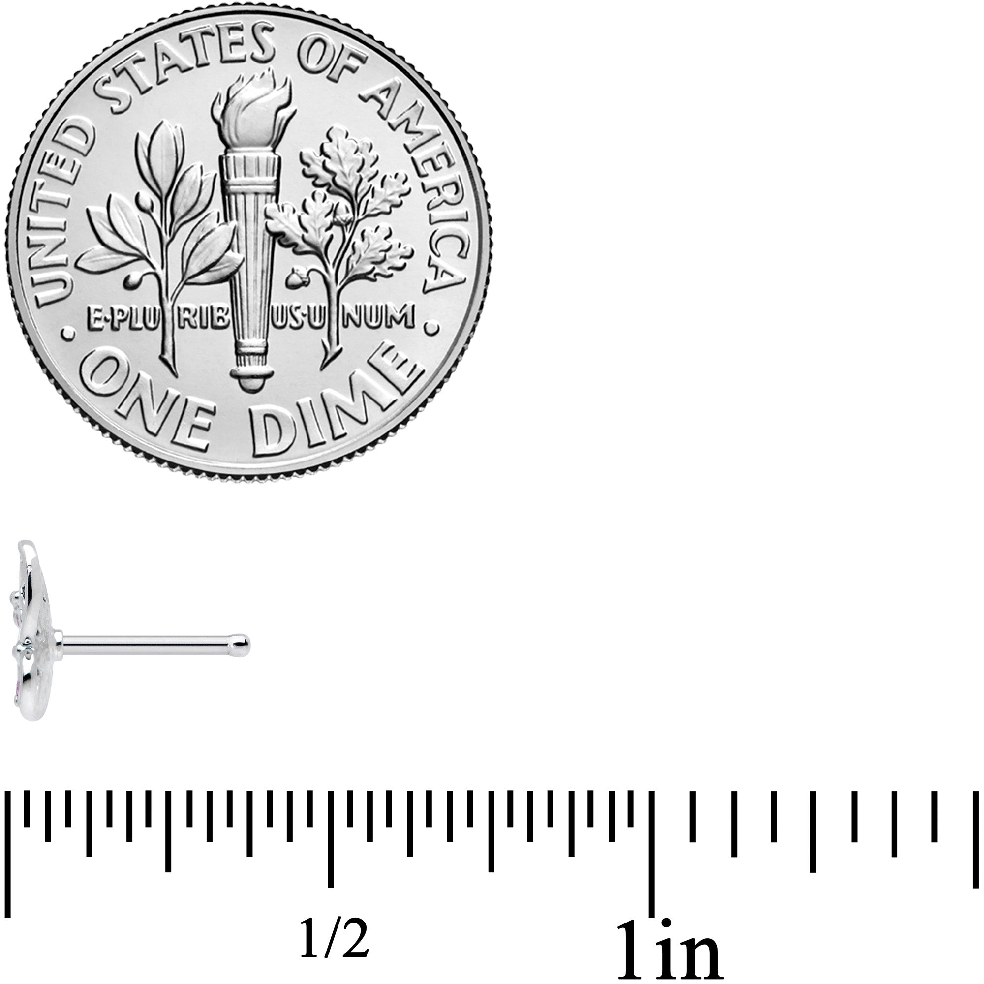 The butterfly on this 20 gauge nostril ring almost improves on nature itself! It's made with a 6mm durable 316L surgical grade stainless steel straight post and features a butterfly charm, set along the wing with pink gems that can't help but catch the eye of any onlooker. The butterfly's wing is open work with lacy patterns running through for a look that's elegant. Let your nostril piercing come out of its cocoon with this visually striking butterfly nose jewelry!