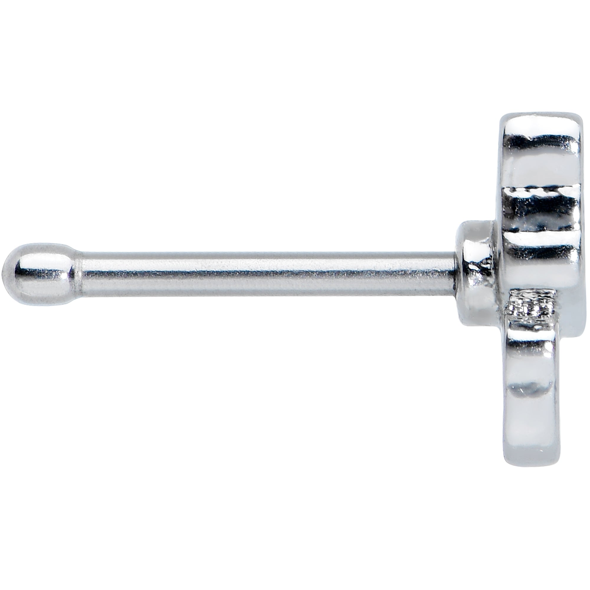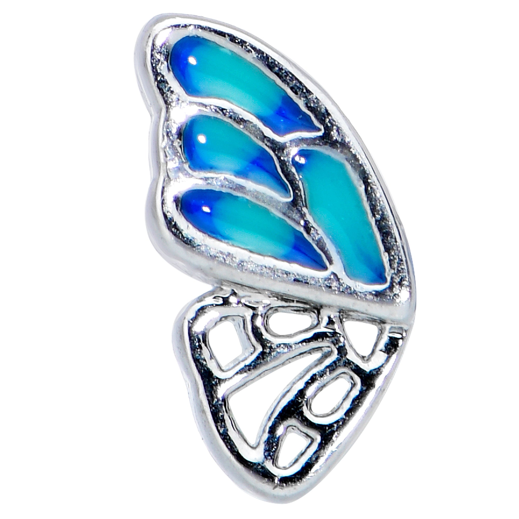 Keep it simple as well as stylish with this 20 gauge nostril ring! It's made with a 6mm durable 316L surgical grade stainless steel straight post. It features a butterfly wing charm wish elegant tracery detailing. The top half is inlaid in blue for added color. Let your nose piercing take flight with this beautiful butterfly nose piercing ring.